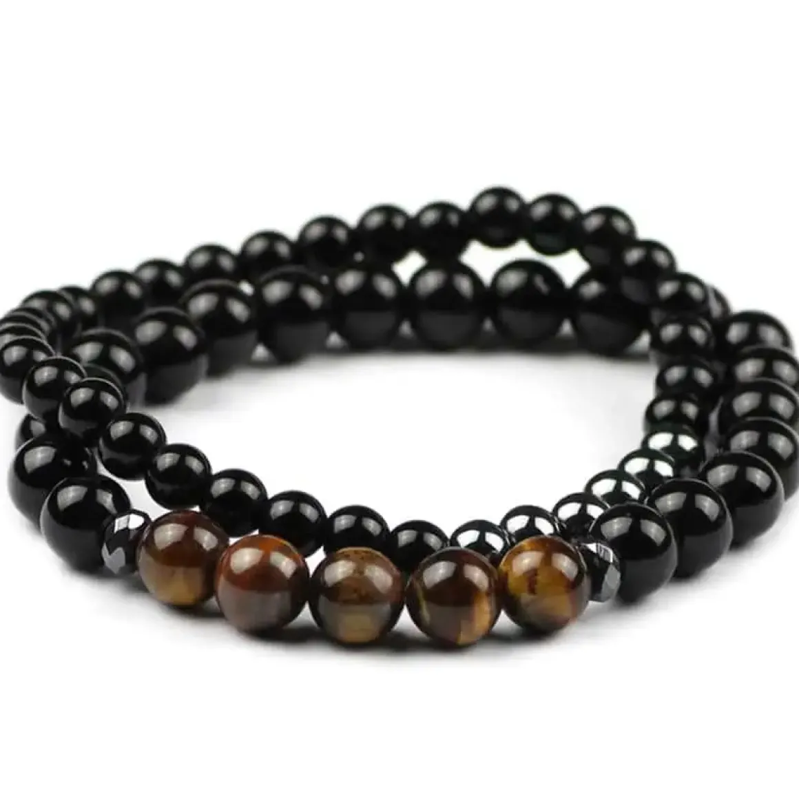 Sættet består af armbånd med 6 og 8 mm naturperler (farverne kan variere), monteret på elastik, så de sidder perfekt på håndled i størrelsen 17–21 cm.