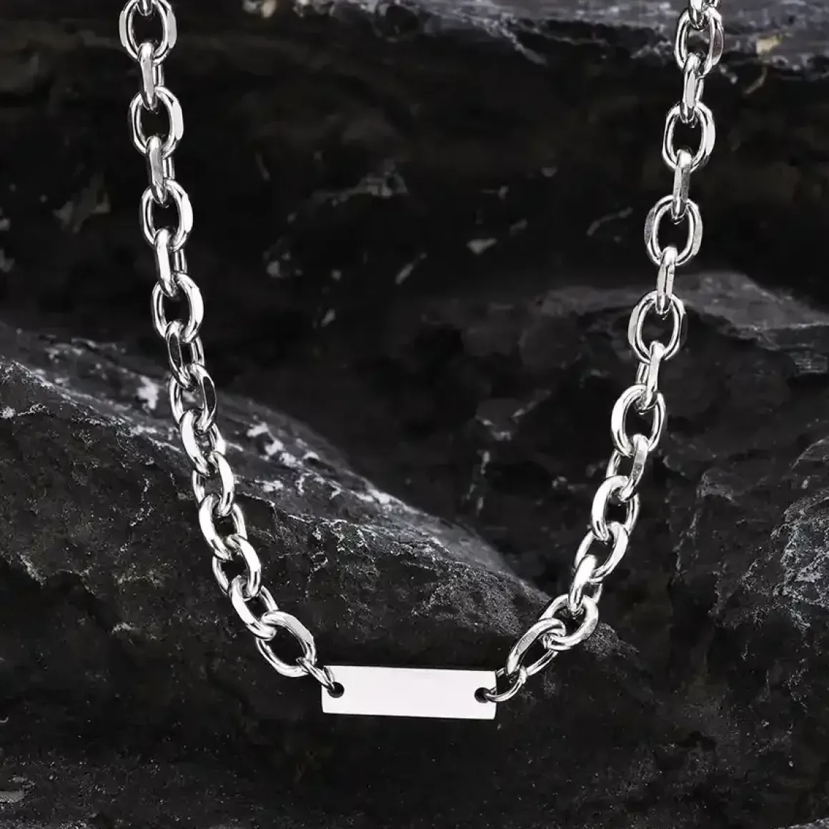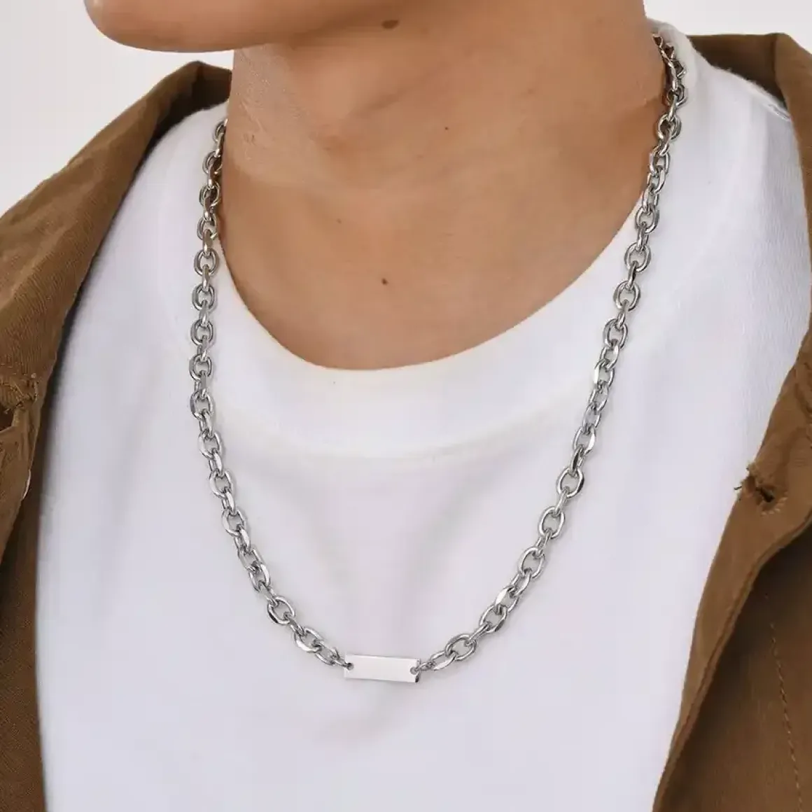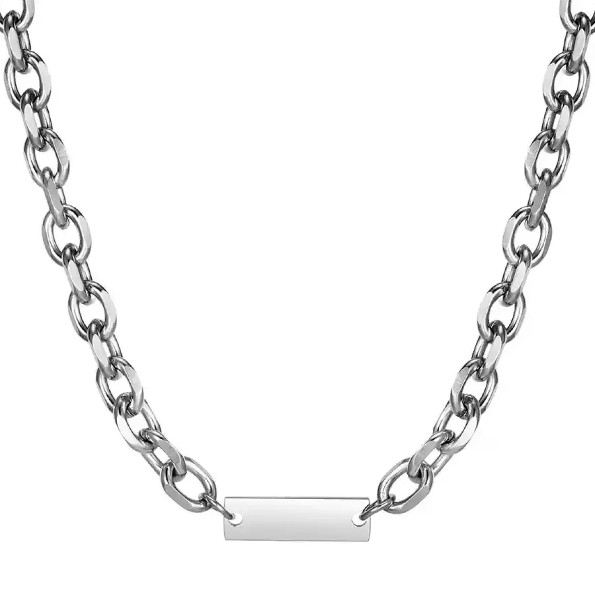 Denne 7mm stållænke i rustfri stål er perfekt til at tilføje et stilfuldt touch til dit look. Med en plade i rustfri stål og en længde på 51 cm, kan kæden nemt tilpasses og afkortes efter behov.