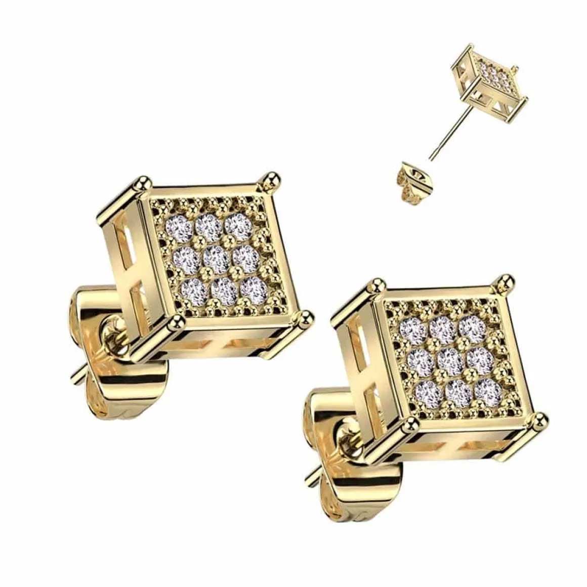 Flot forgyldt ørerstik med 9 glimtende CZ sten.