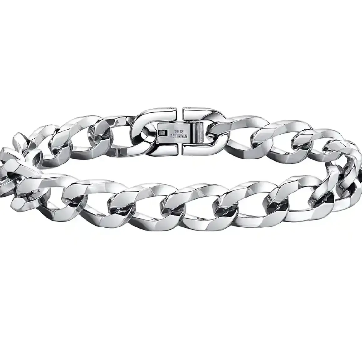 Armbåndet er i rustfrit stål og har en maskulin og elegant stil.