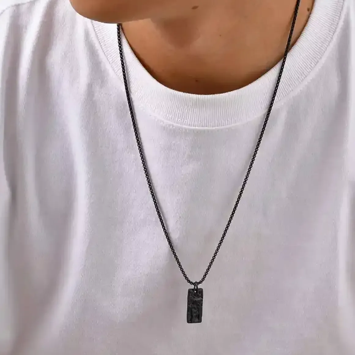 Den medfølgende kæde på 60 cm giver et råt og maskulint udtryk, der passer perfekt til både casual og stilrent look.