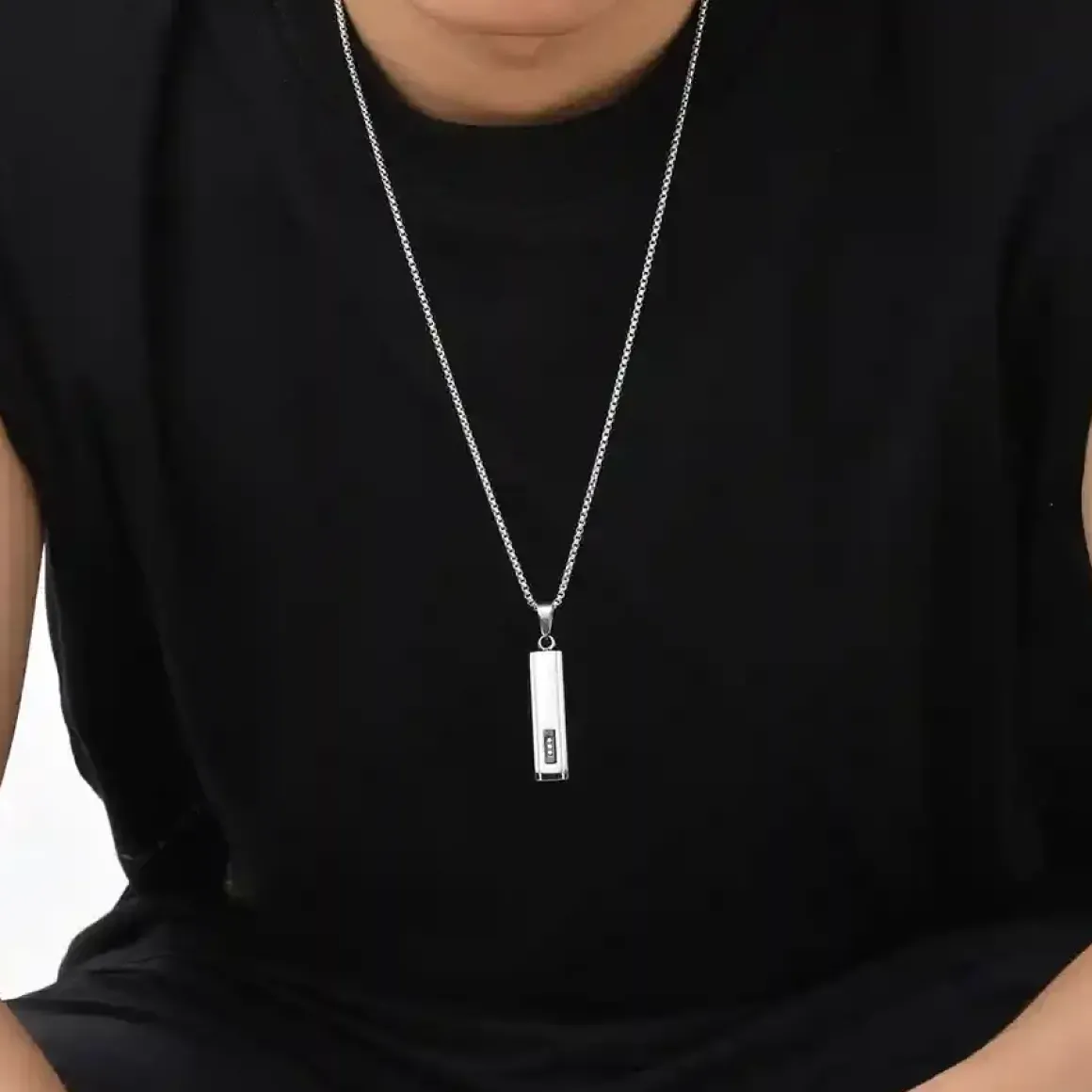 Halskæden leveres med en solid kæde på 60 cm, der falder perfekt på brystet og passer til både hverdagsbrug og mere formelle outfits. Et moderne herresmykke, der understreger stil, selvtillid og enkel elegance.