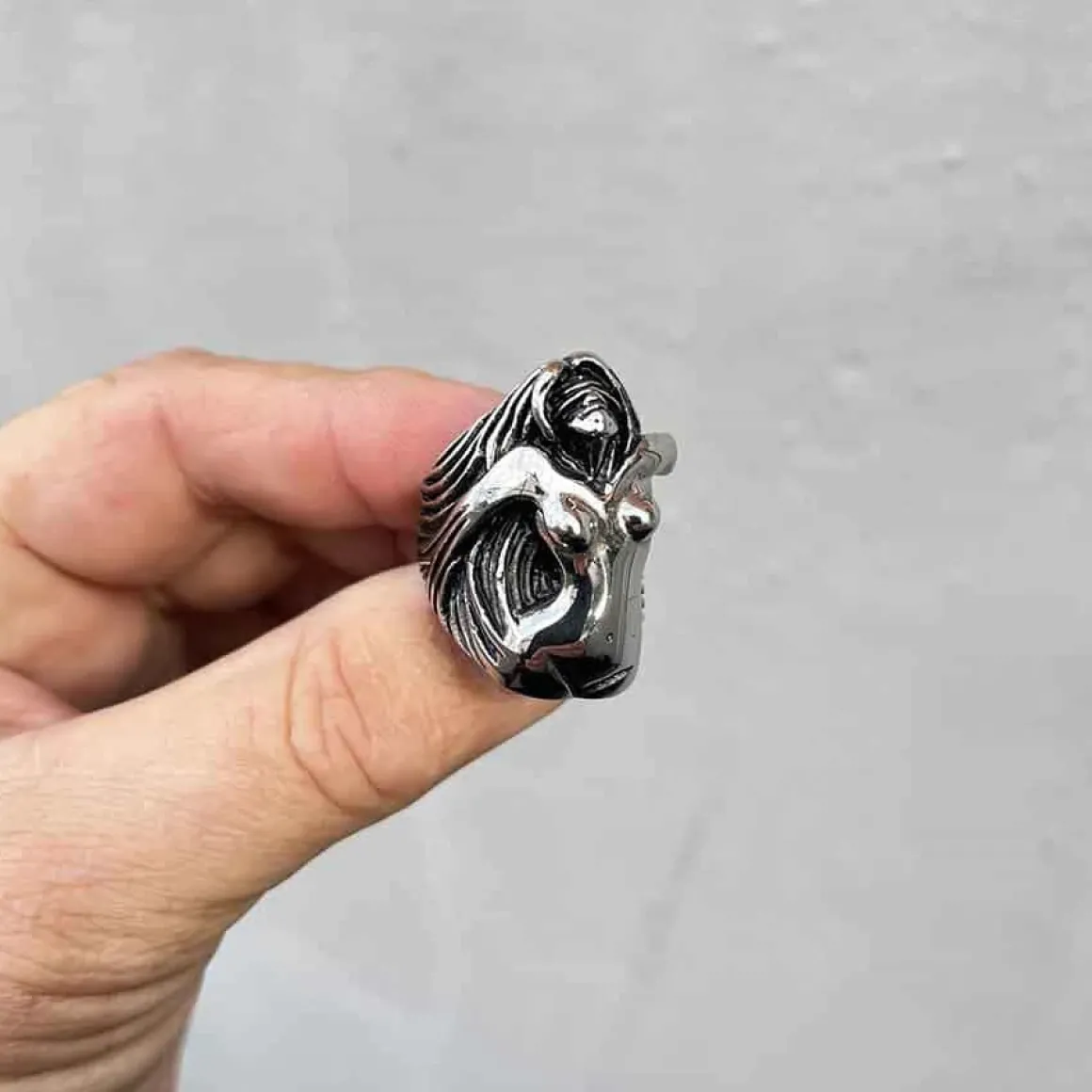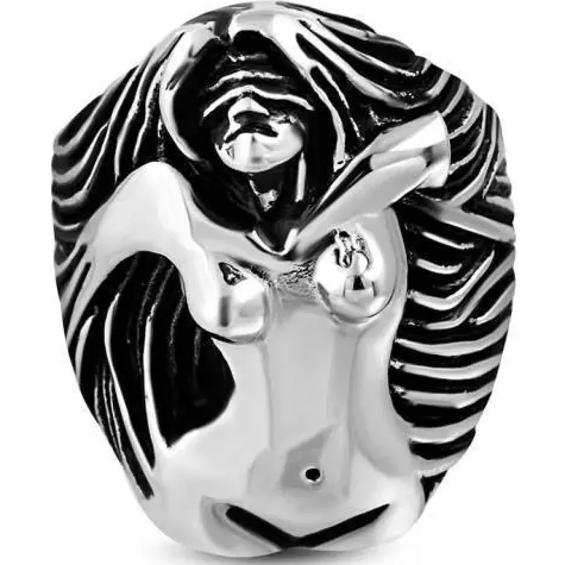 Wauu en lækker dame på denne fede biker ring i rustfrit stål.