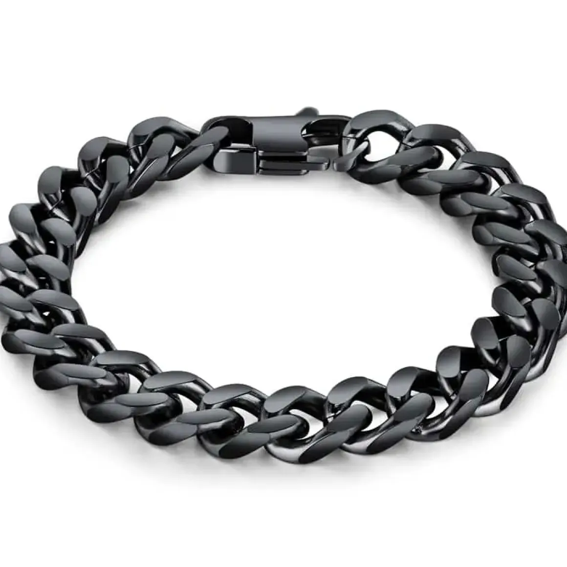 Smart højpolleret rustfri stålarmbånd med faseterede lænker.