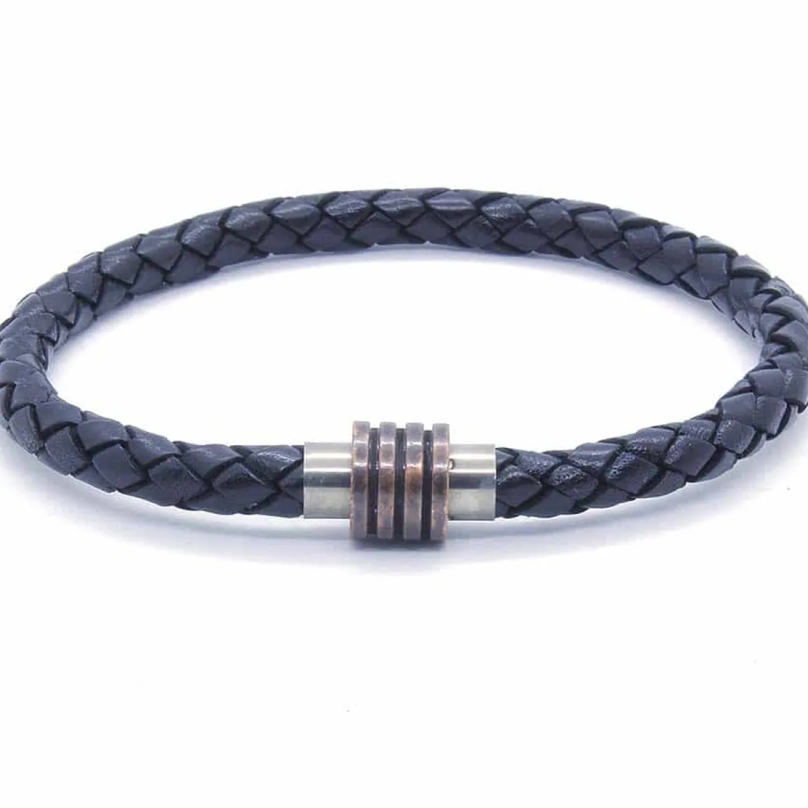 6mm læder-flet i super kvalitet og med magnetlås i bronze matteret stål.