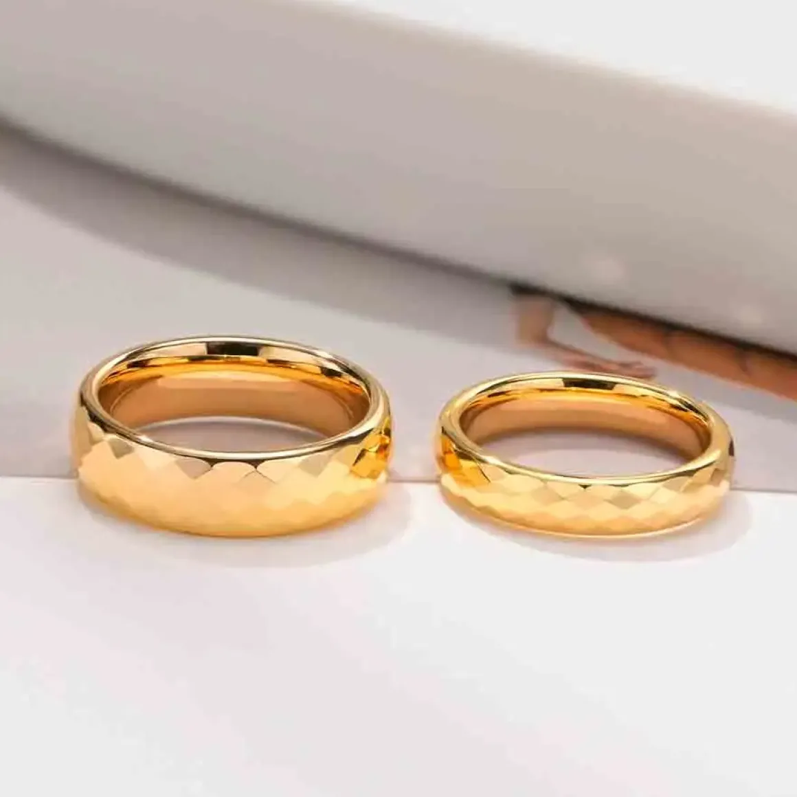 Faceteret forlovelse eller vielsesring i forgyldt tungsten.