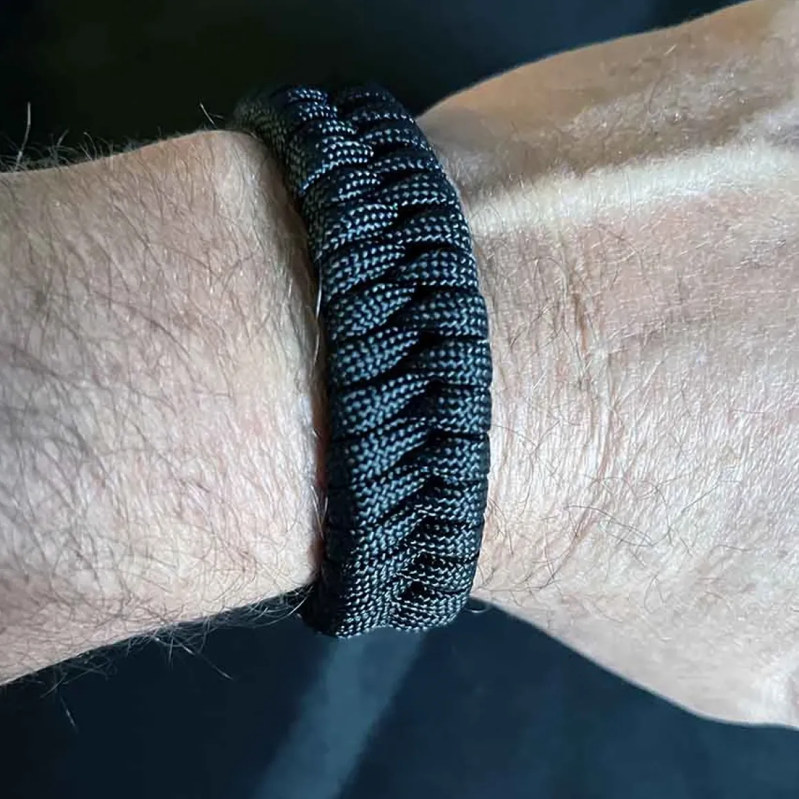 Sort armbånd i faldskærmsline.