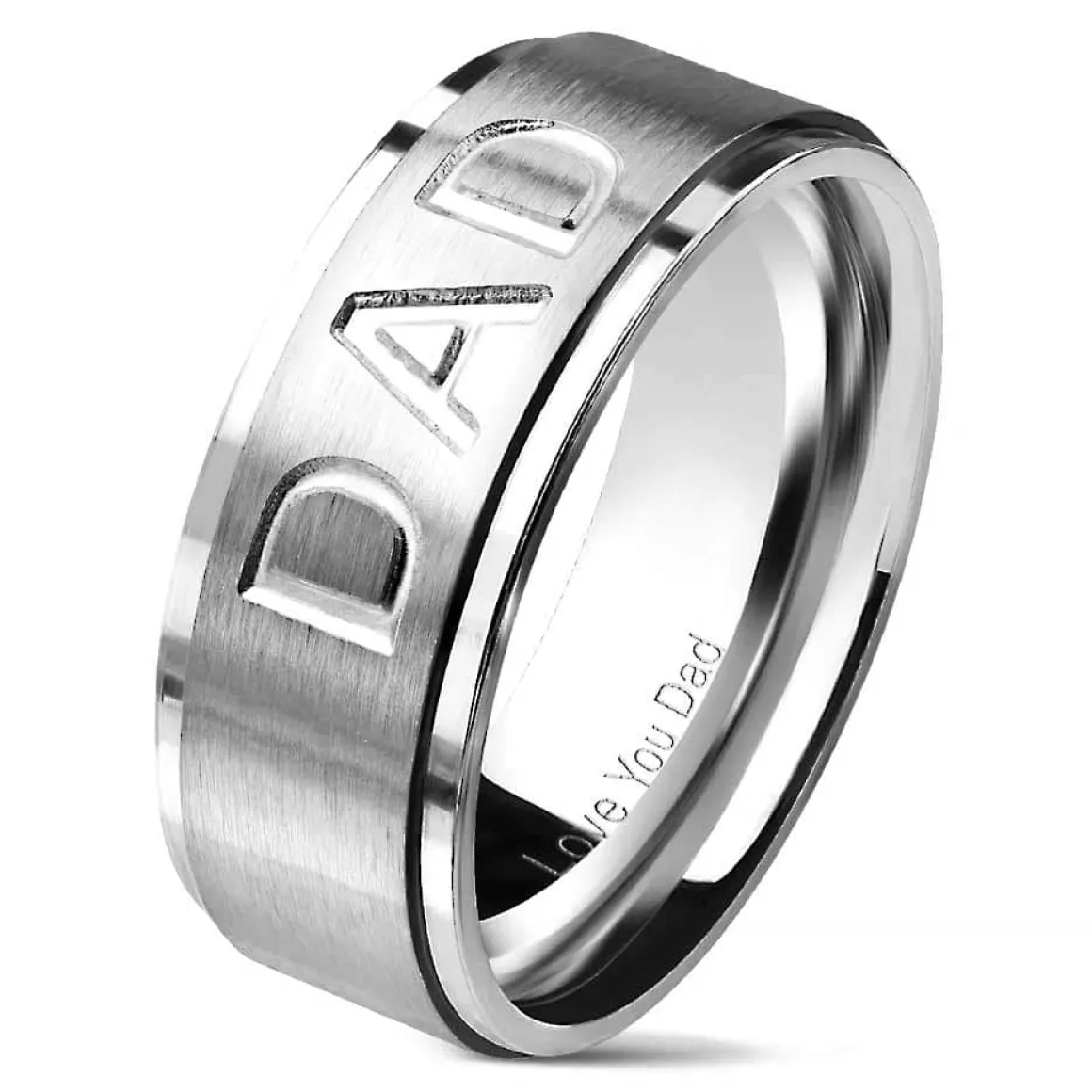 8mm brede og matteret midt med ordet DAD og inden i ringen er graveret “Love You DAD”