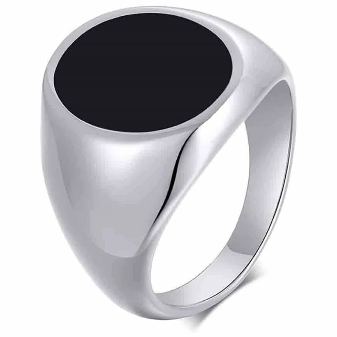 Her er din nye stil med denne elegante herrering i rustfrit stål. Den har en smuk blank finish og en sort agatsten, der tilføjer et sofistikeret touch.
