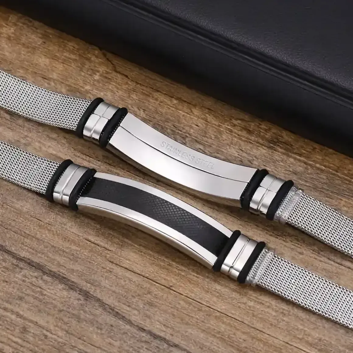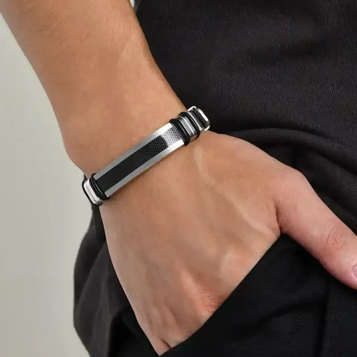 Elegance fra svundne tider med ‘GF herrearmbånd i rustfri stål’.