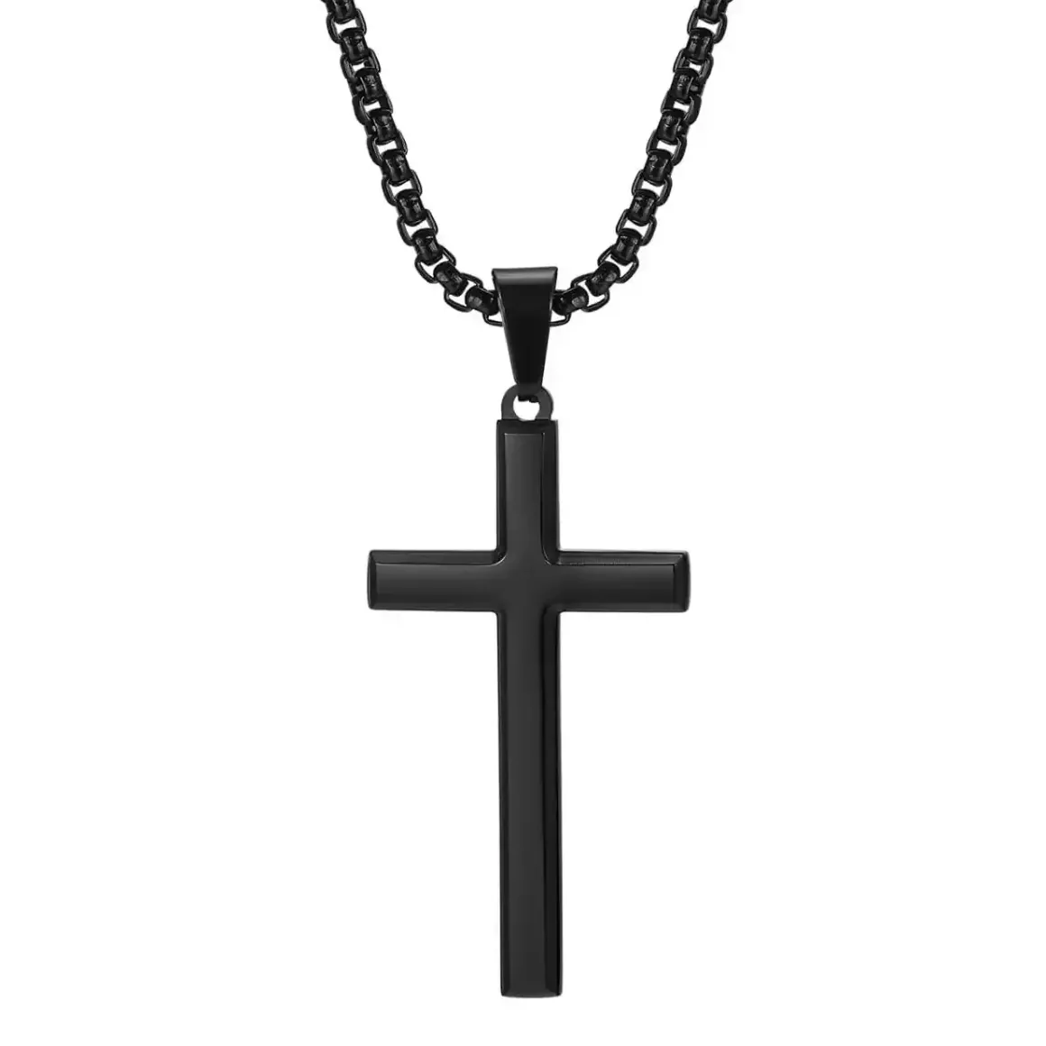 Præsenter dig med stil med dette flotte Gloss korssmykke i blackcoat stål til mænd.
