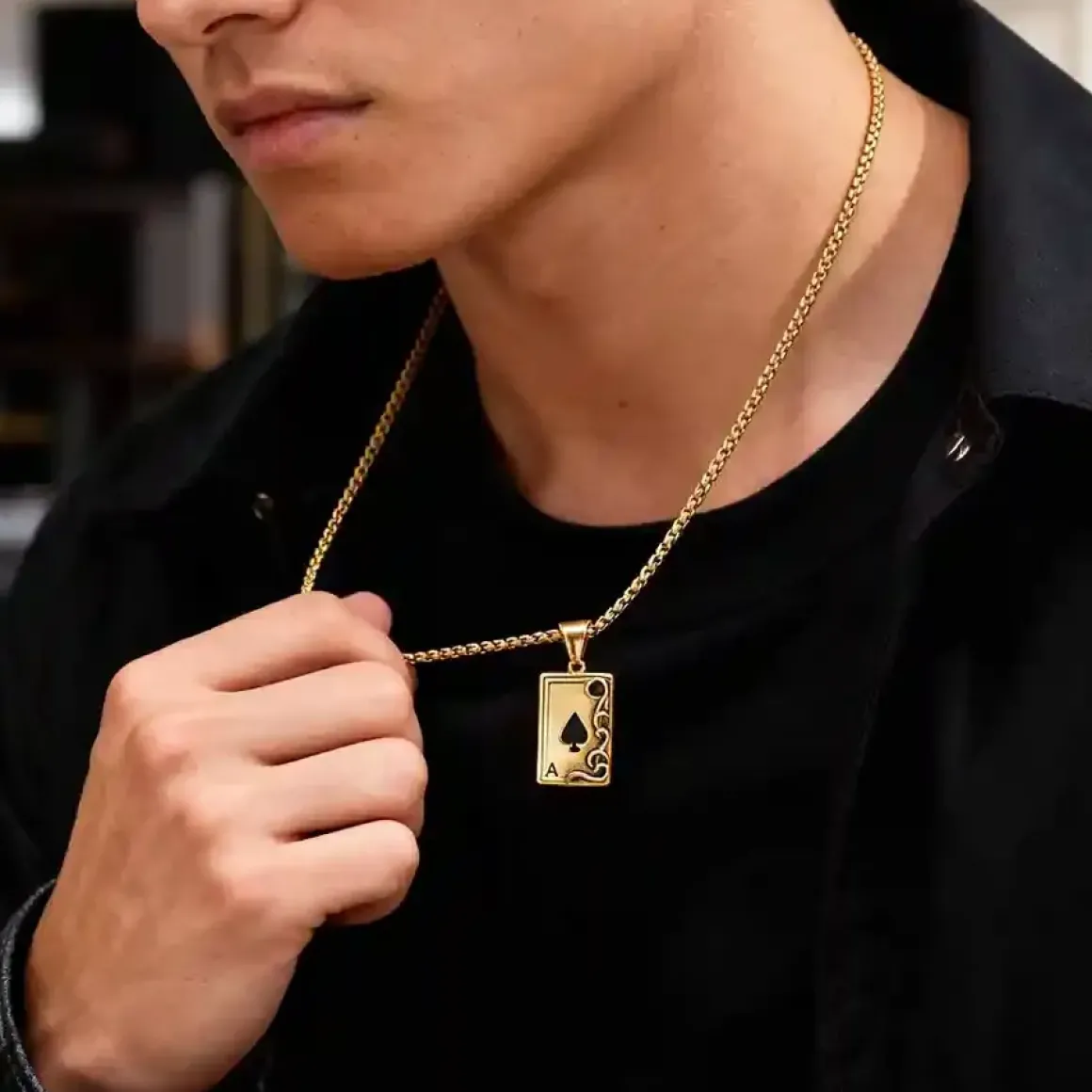 Forgyldt ædelstål halskæde med Spar Es motiv.