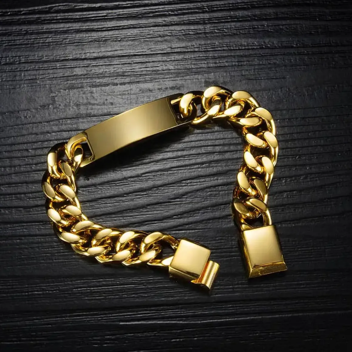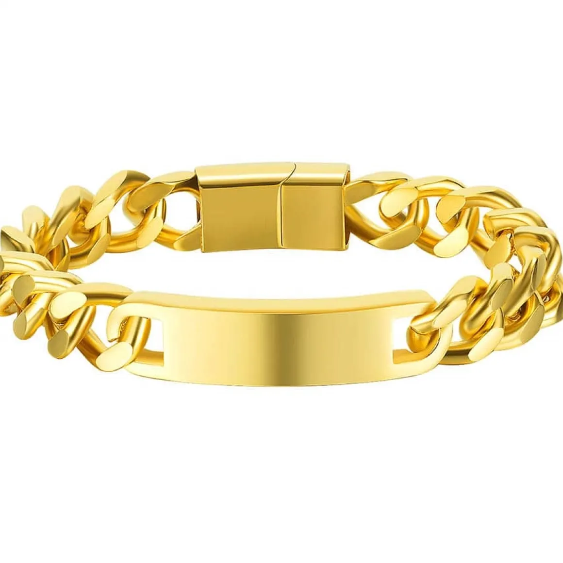 Dette friske og moderne armbånd kan blive din favorit. Med sit kraftige guldbelagte IP-gold i rustfrit stål vil det helt sikkert få folk til at vende blikket med sit unikke og iøjnefaldende look. Nickey tilføjer et strejf af glamour og raffinement til ethvert outfit, perfekt til afslappet hverdagstøj eller til særlige lejligheder.