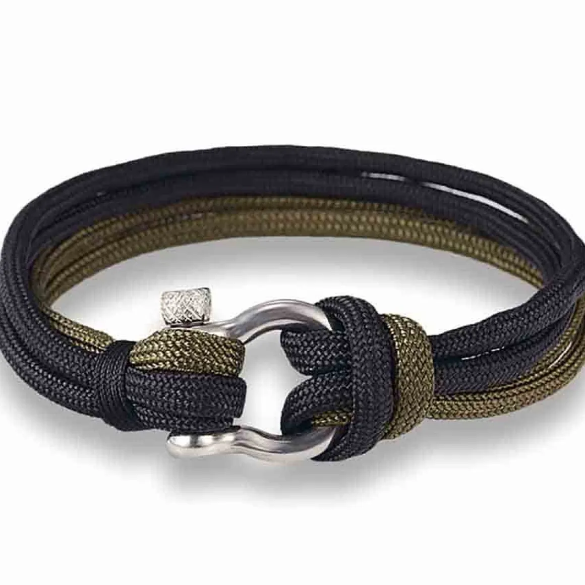 Sejlerarmbånd i 6mm sort og grøn sejlersnor og stål luk.