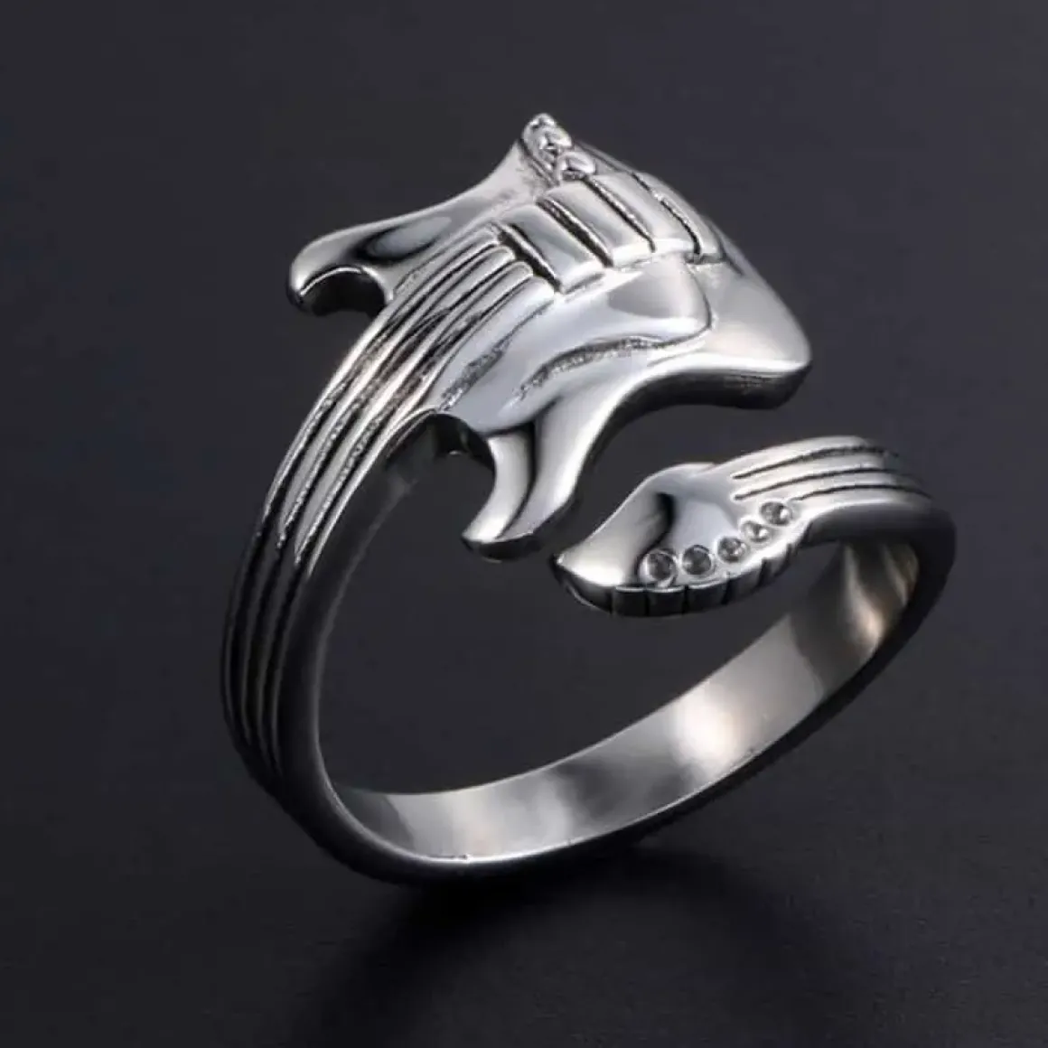 Guitar bikerring i rustfri stål.