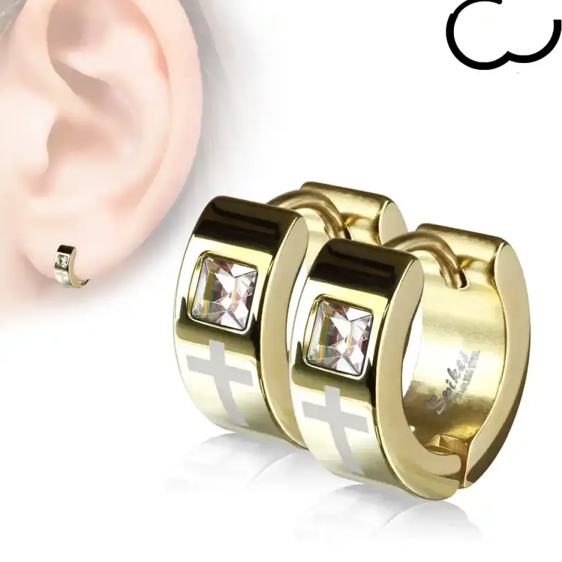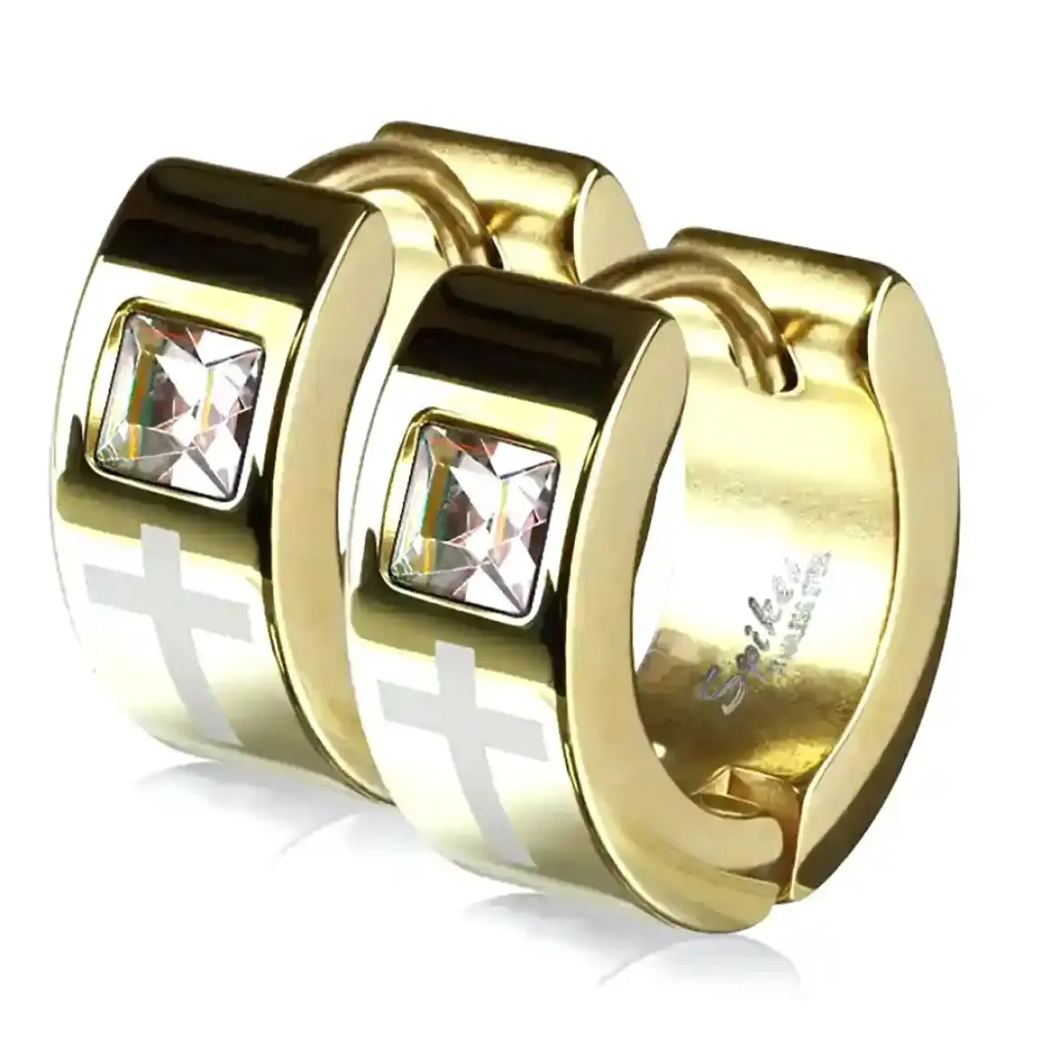 Oplev raffinement med ‘Gylden kors og cirkon ørering IP belagt’.