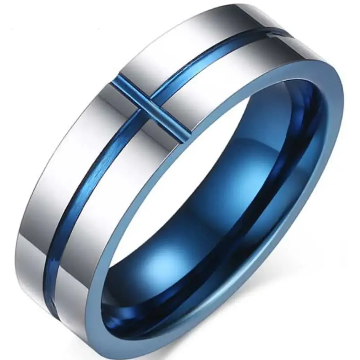 Flot blå herrering i Tungsten Carbide med kryds.