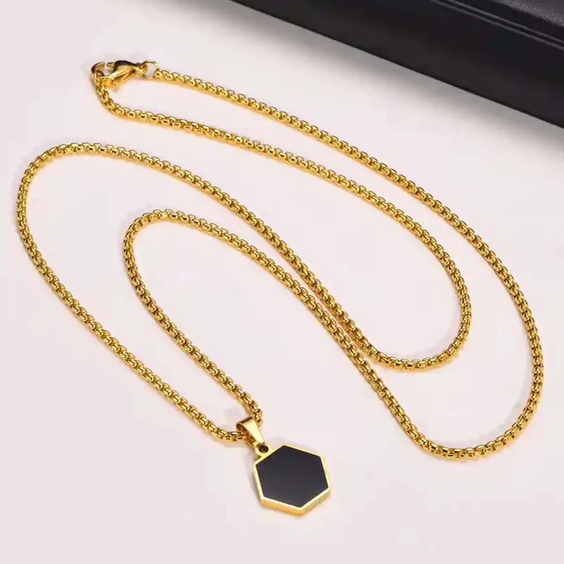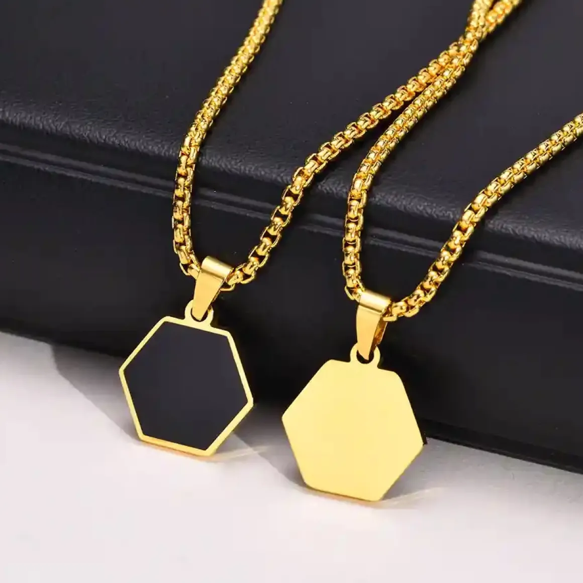 Hexa Gold Black er en stilren herrehalskæde i rustfrit stål med et markant sekskantet vedhæng i sort og IP-forgyldt finish. Det moderne design giver et eksklusivt udtryk, som passer perfekt til både hverdag og fest.
