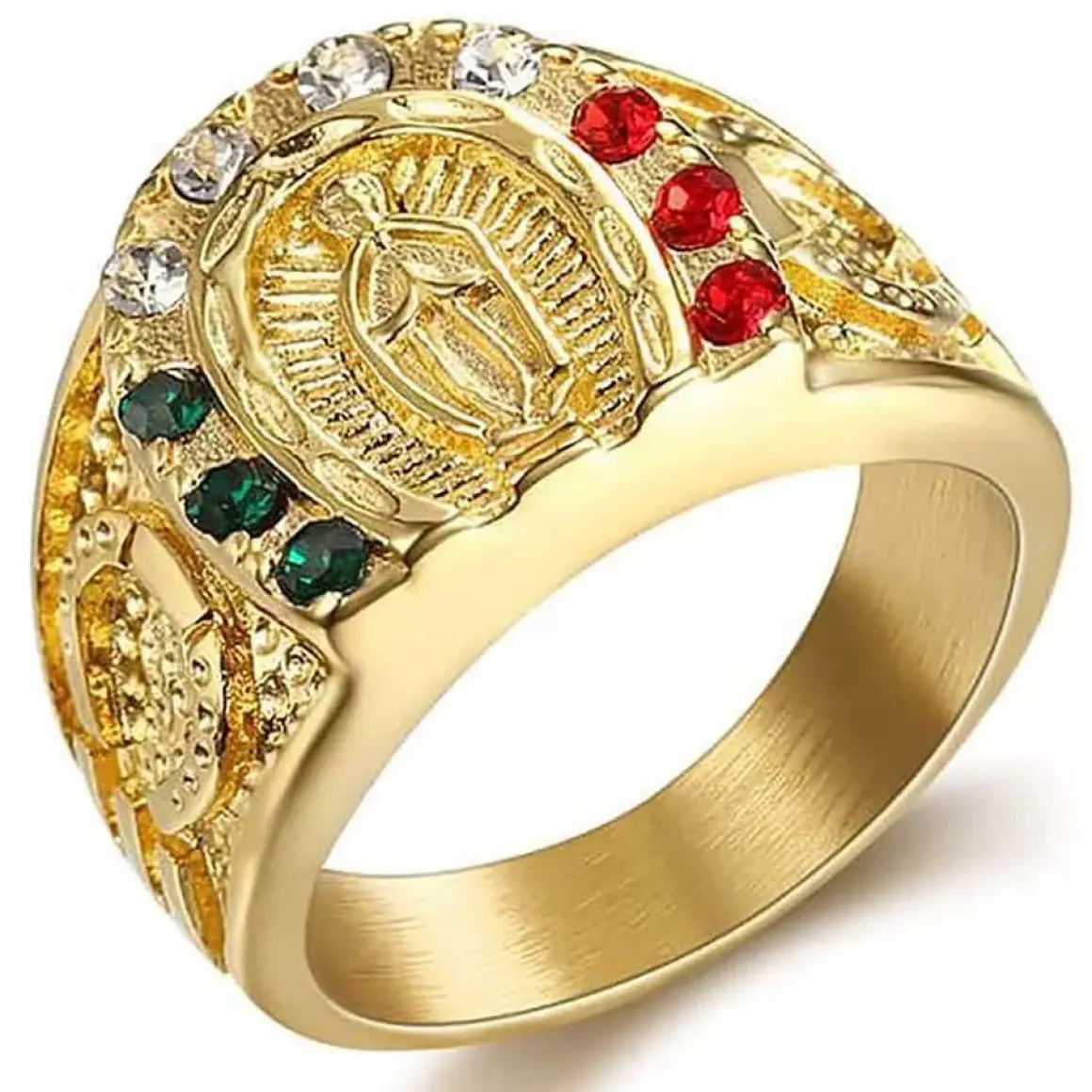 Forgyldt herrering med sten i hestesko form.