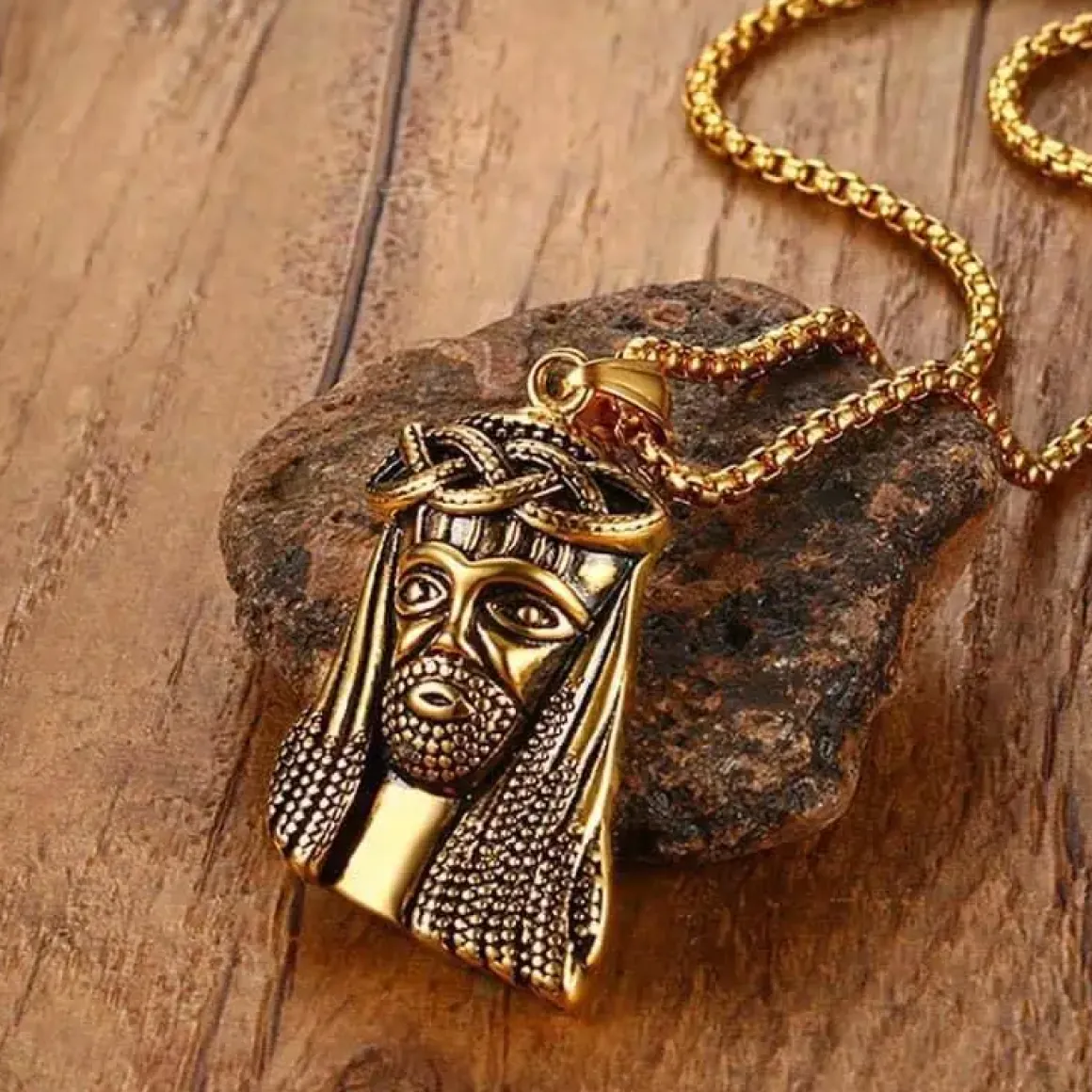 Lækkert forgyldt halskæde med jesus vedhæng. Kæden og vedhæng er forgyldt rustfri stål i super kvalitet.