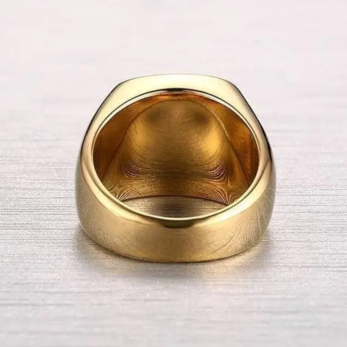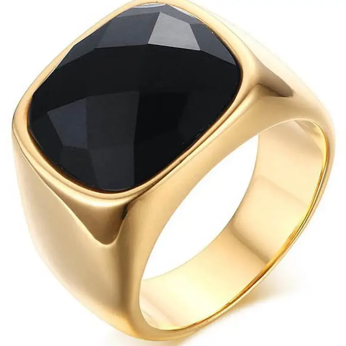 Stor flot forgyldt herrering med sort facet agat sten i sort.