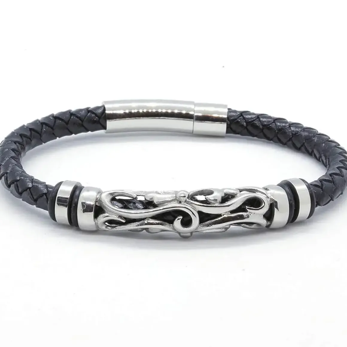 Sort bololæder og blank stål giver det armbånd et meget maskulint look.
