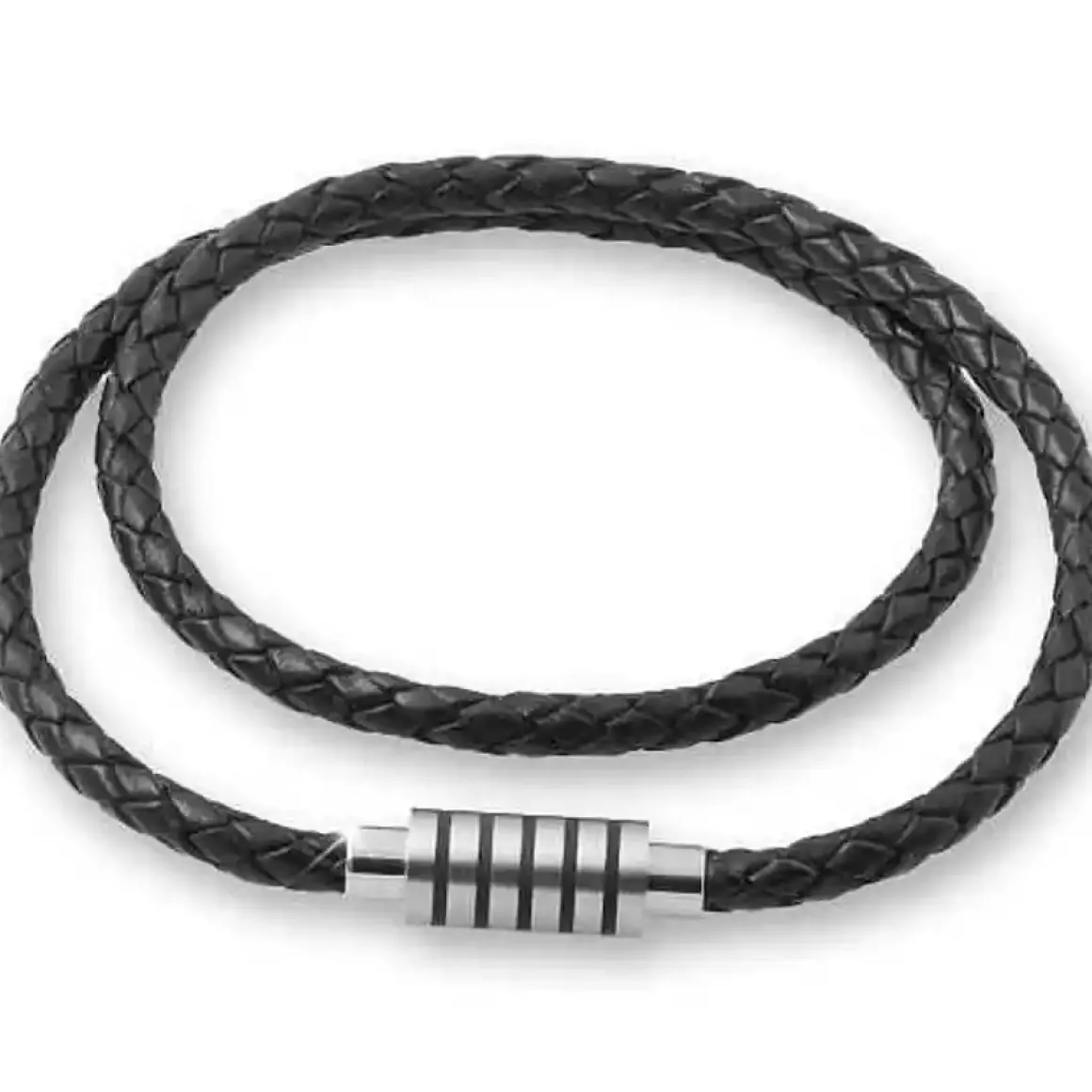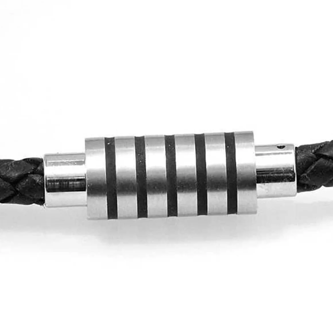 6 mm læderflet i sort læder med magnetlås i Rustfrit mat stål.