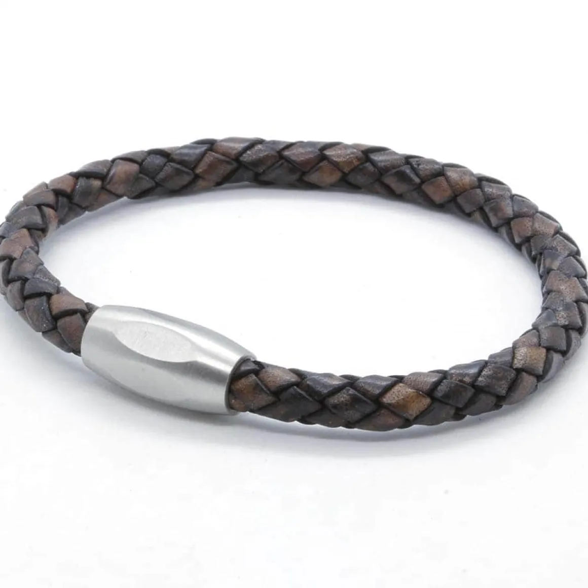 Cool stiligt herrearmbånd i brun bololæder flet.