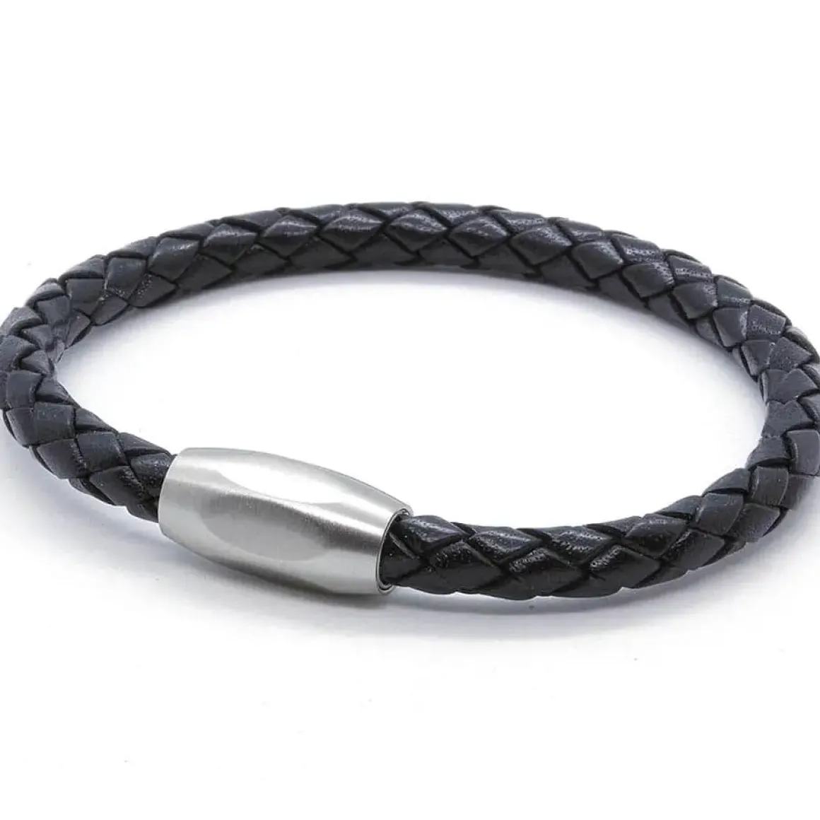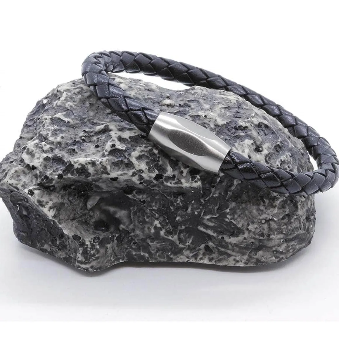 Flot stiligt herrearmbånd i sort bololæder flet.