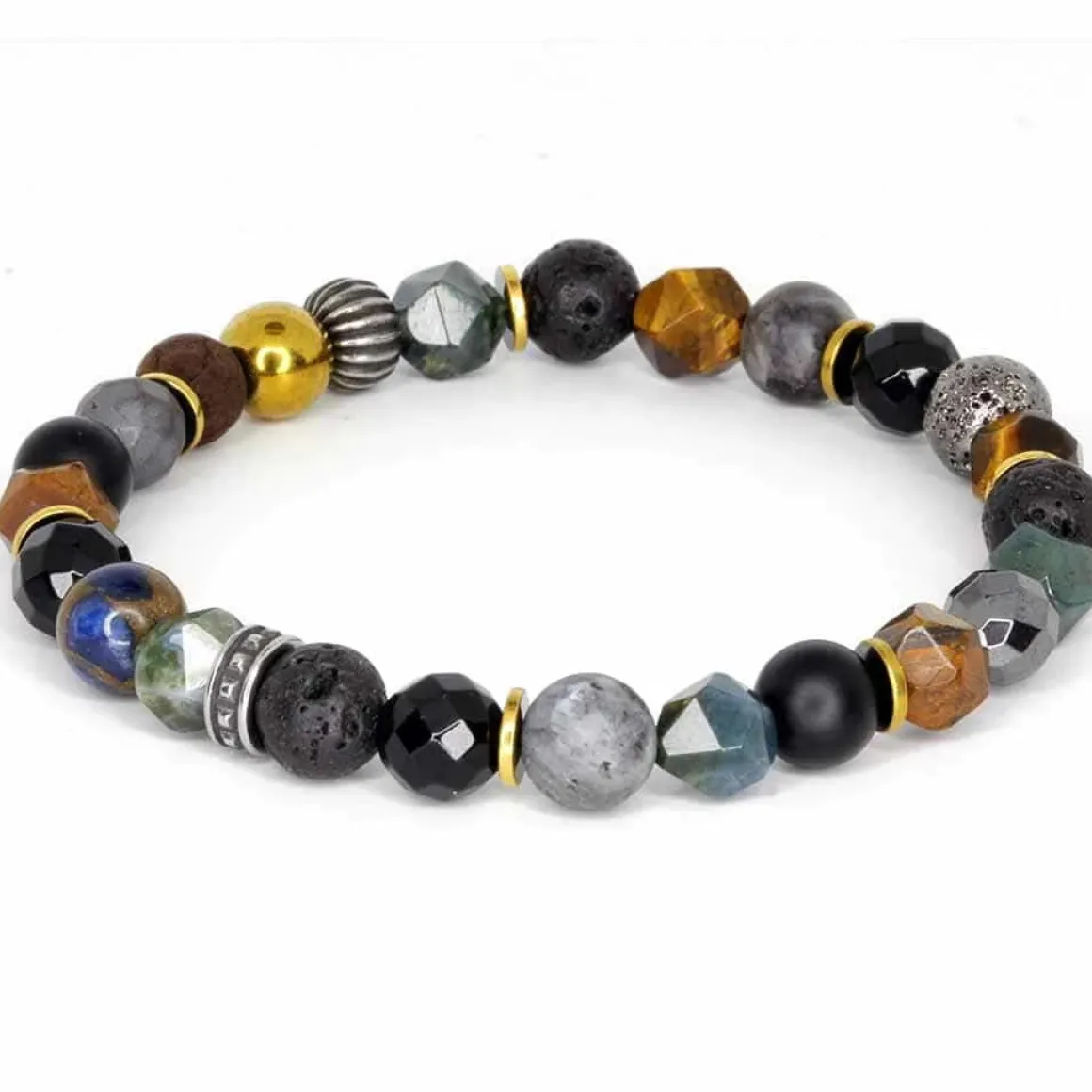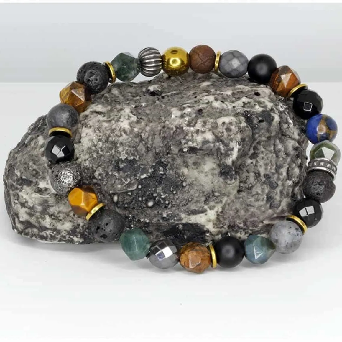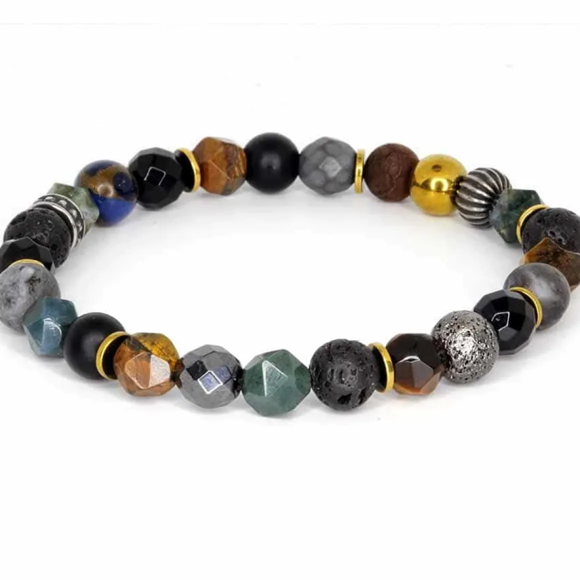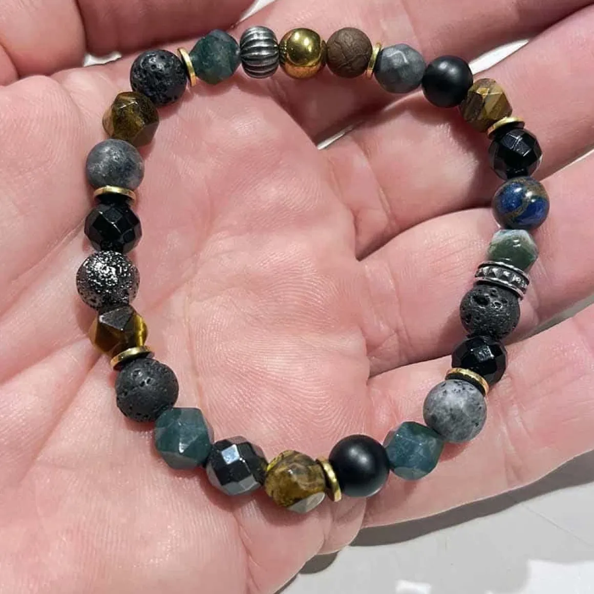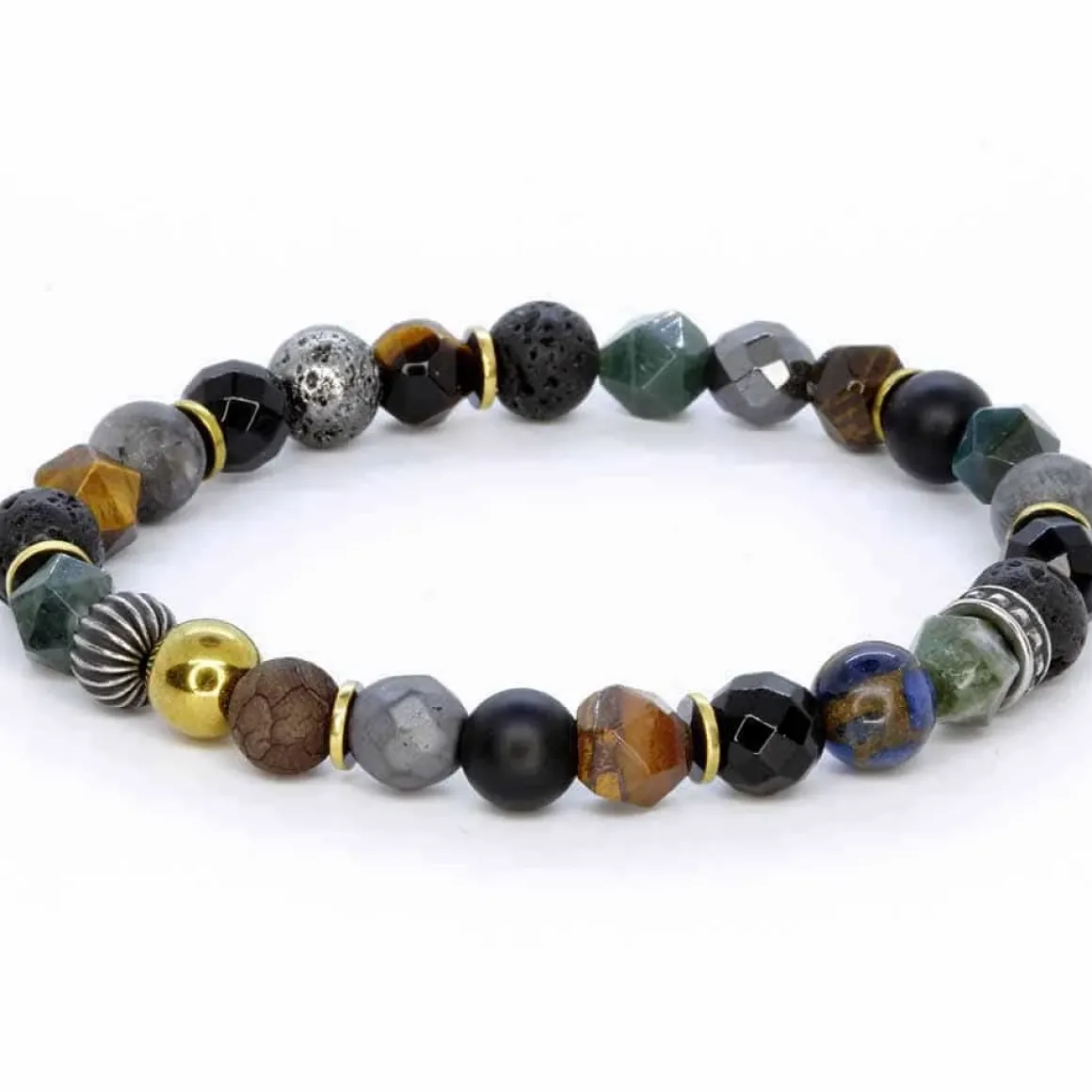 De 8mm perler er omhyggeligt udvalgt til flot sammensætning. Tiger eye, Lava, hamatit osv.