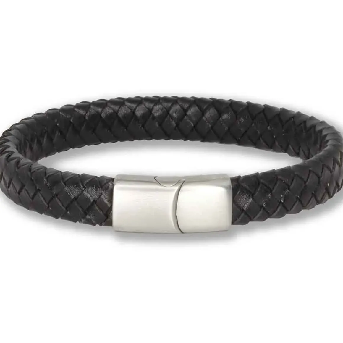– Det sorte læder og fiberdesign tilføjer en elegant touch til dit look. Armbåndet har en bredde på 1 cm og findes i flere længder. Lavet med en matteret rustfri stål magnetlås.