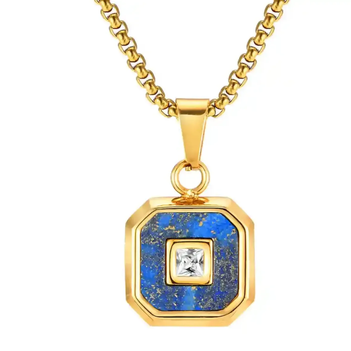 Smukt lille halssmykke i forgyldt stål bluecoat og CZ sten i midt.