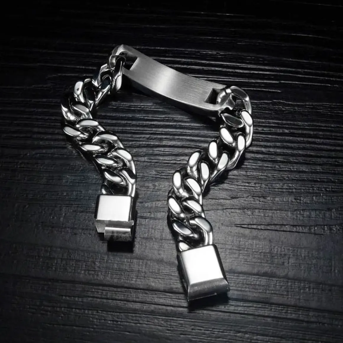 Kraftigt ædelstål armbånd i matteret og blank stål.