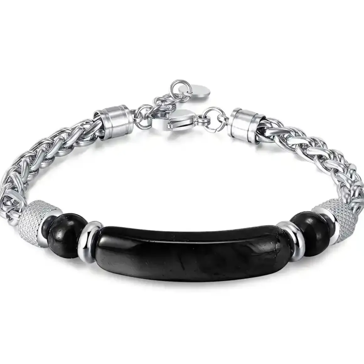 Herre armbånd i rustfri stål med sort agat.