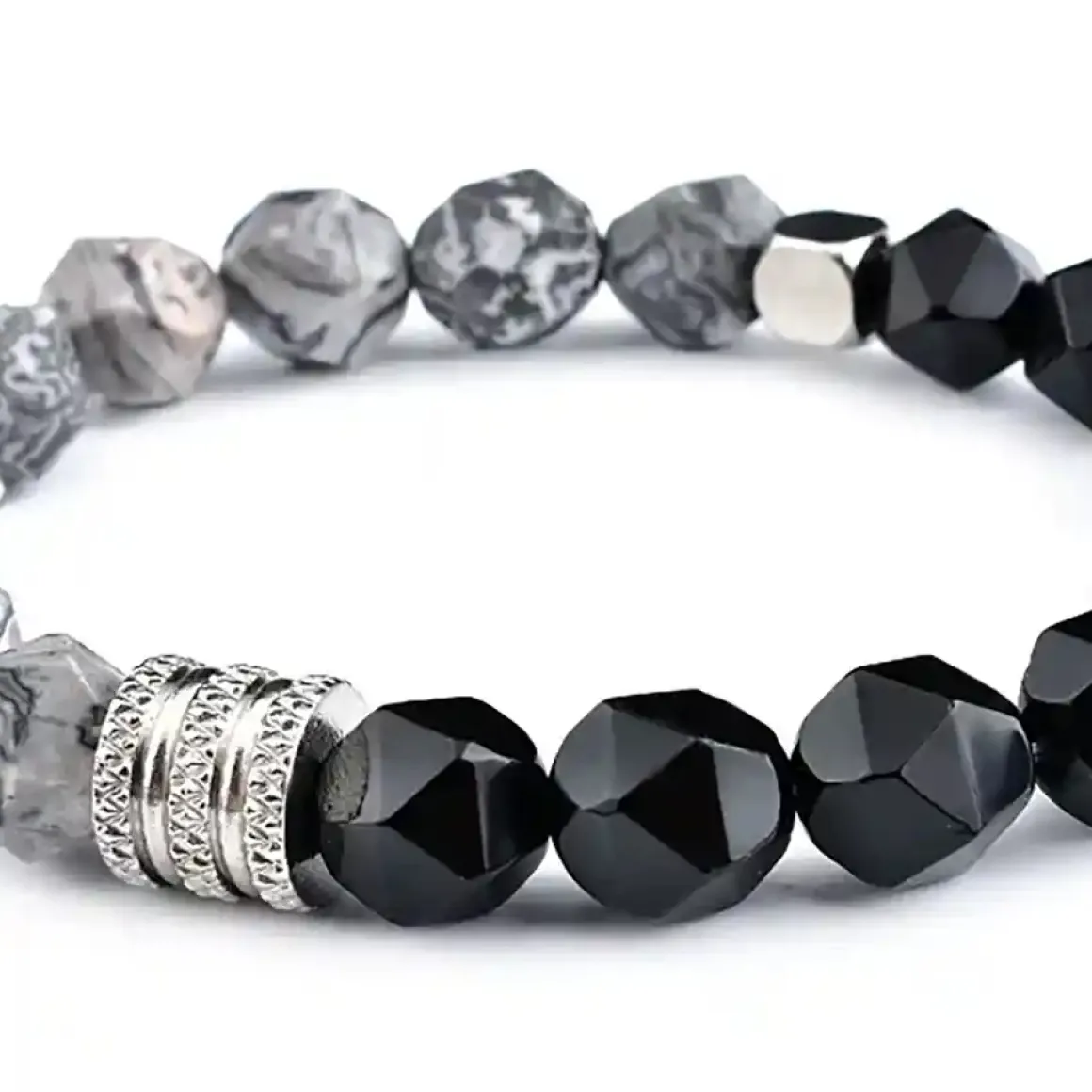 Nordic Balance perlearmbånd til mænd med 10 mm facetterede agat- og lapisperler.
