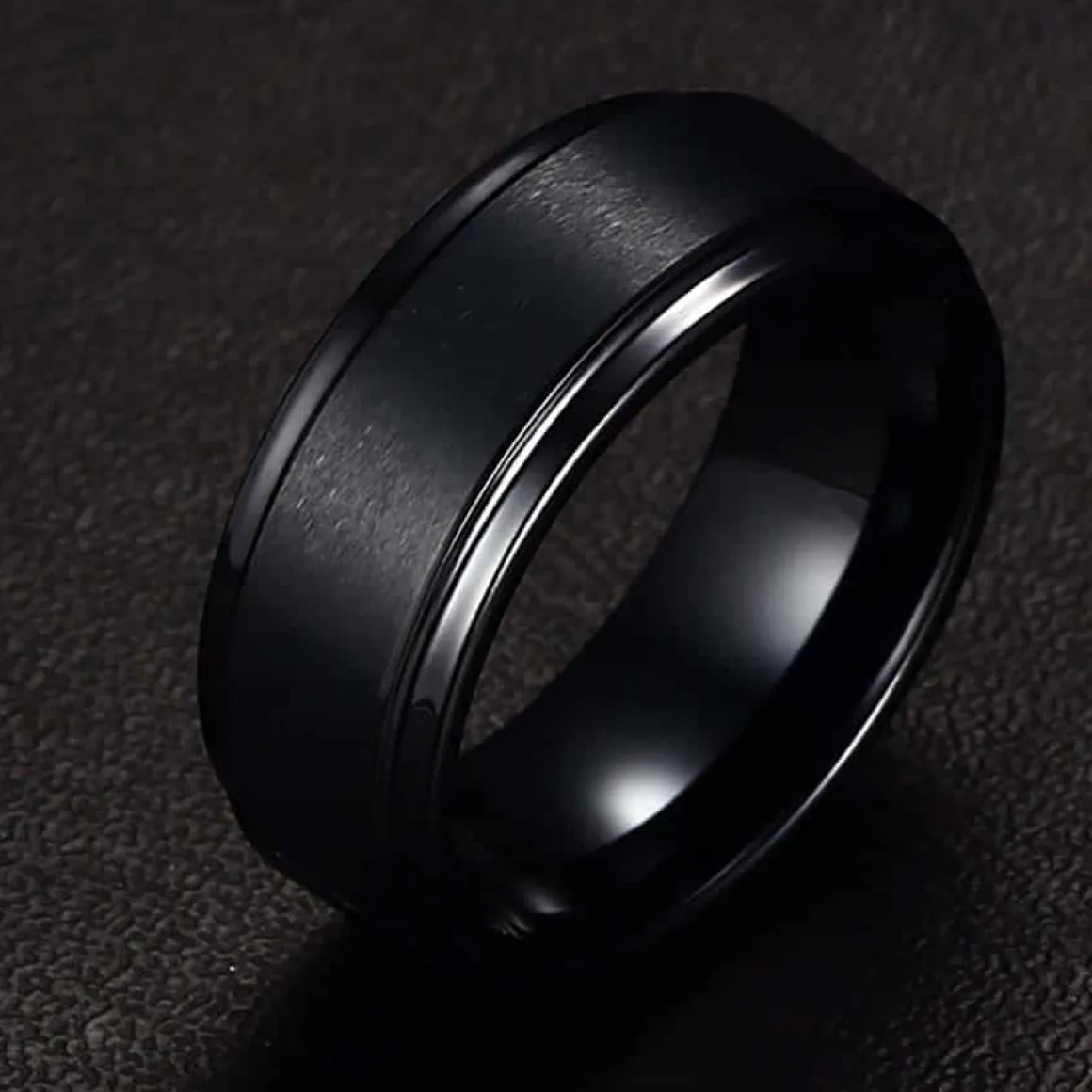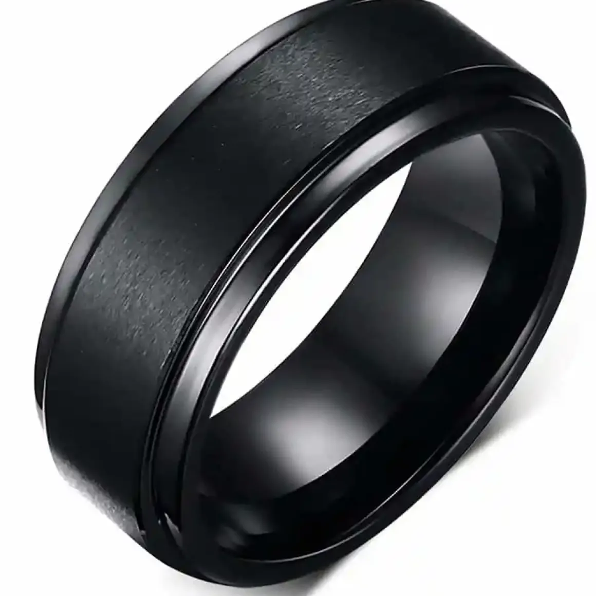 Flot herrering i sort tungsten carbide med mat midterstykke.