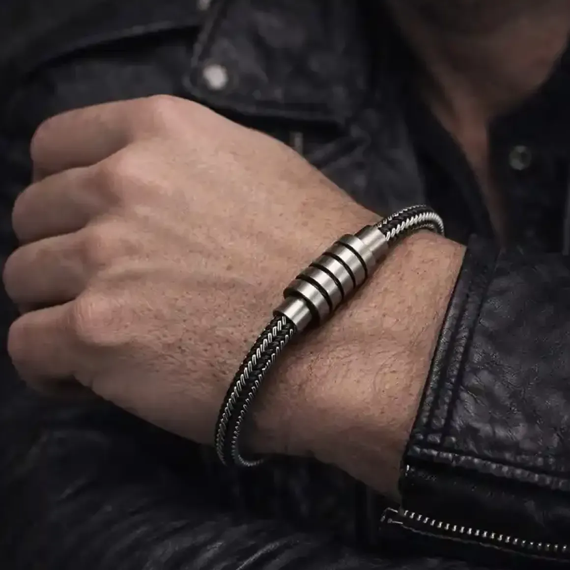 Pulse Steel kombinerer flettet stålwire med en elegant magnetlås, der gør armbåndet både funktionelt og nemt at tage af og på.