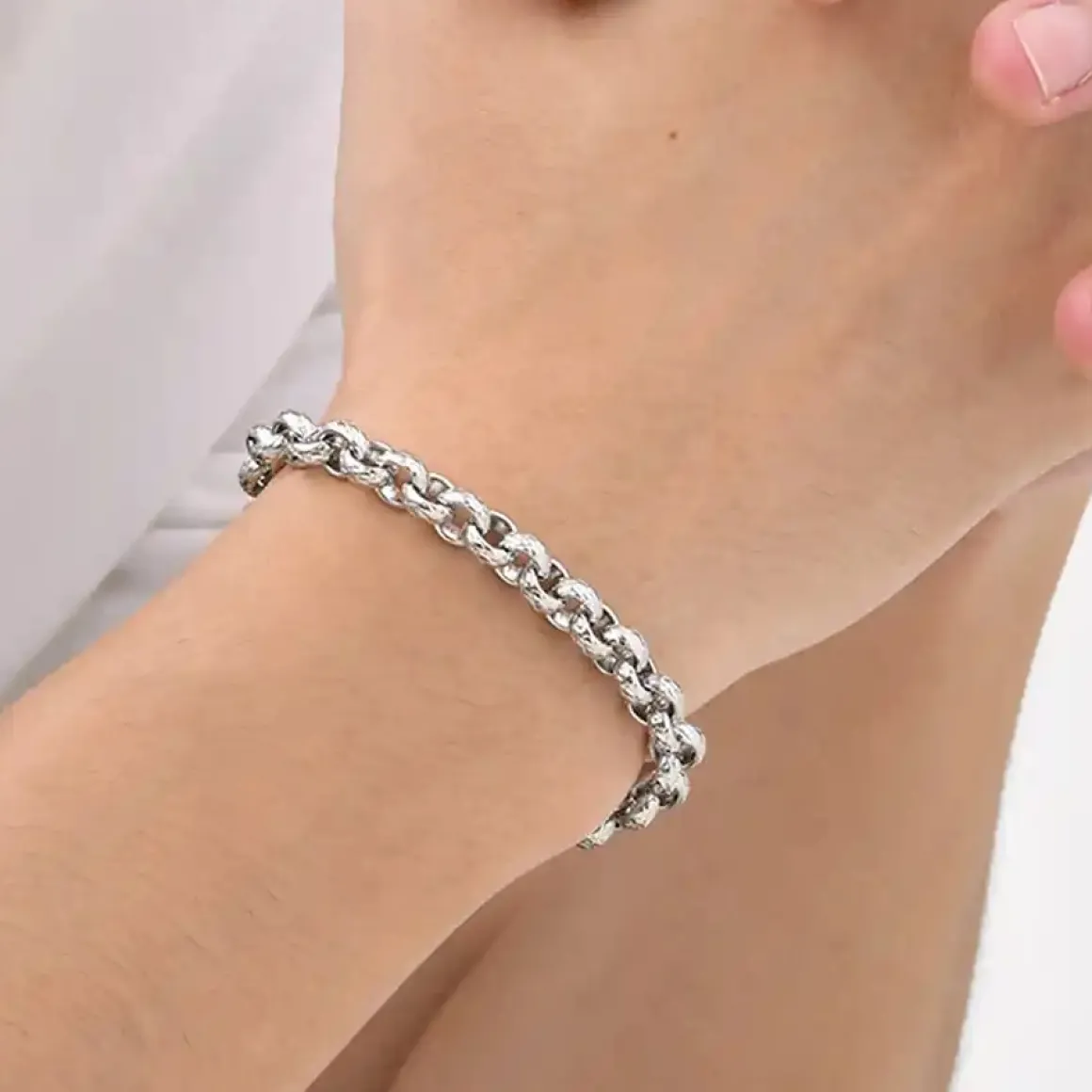 Simpelt stålarmbånd med runde led.
