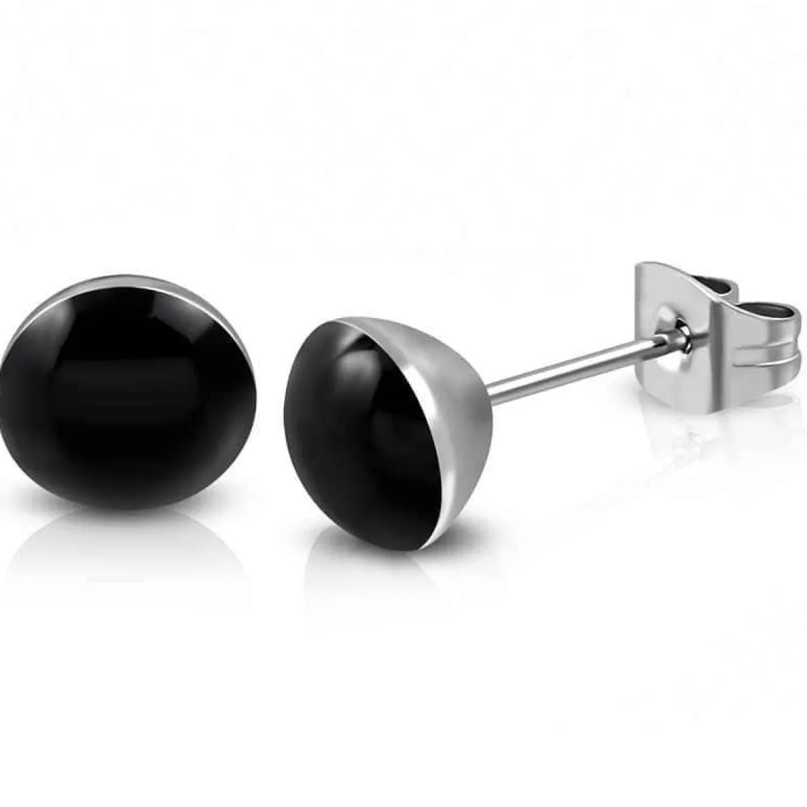 Lille ørestik i rustfri stål med mat sort agat 4mm