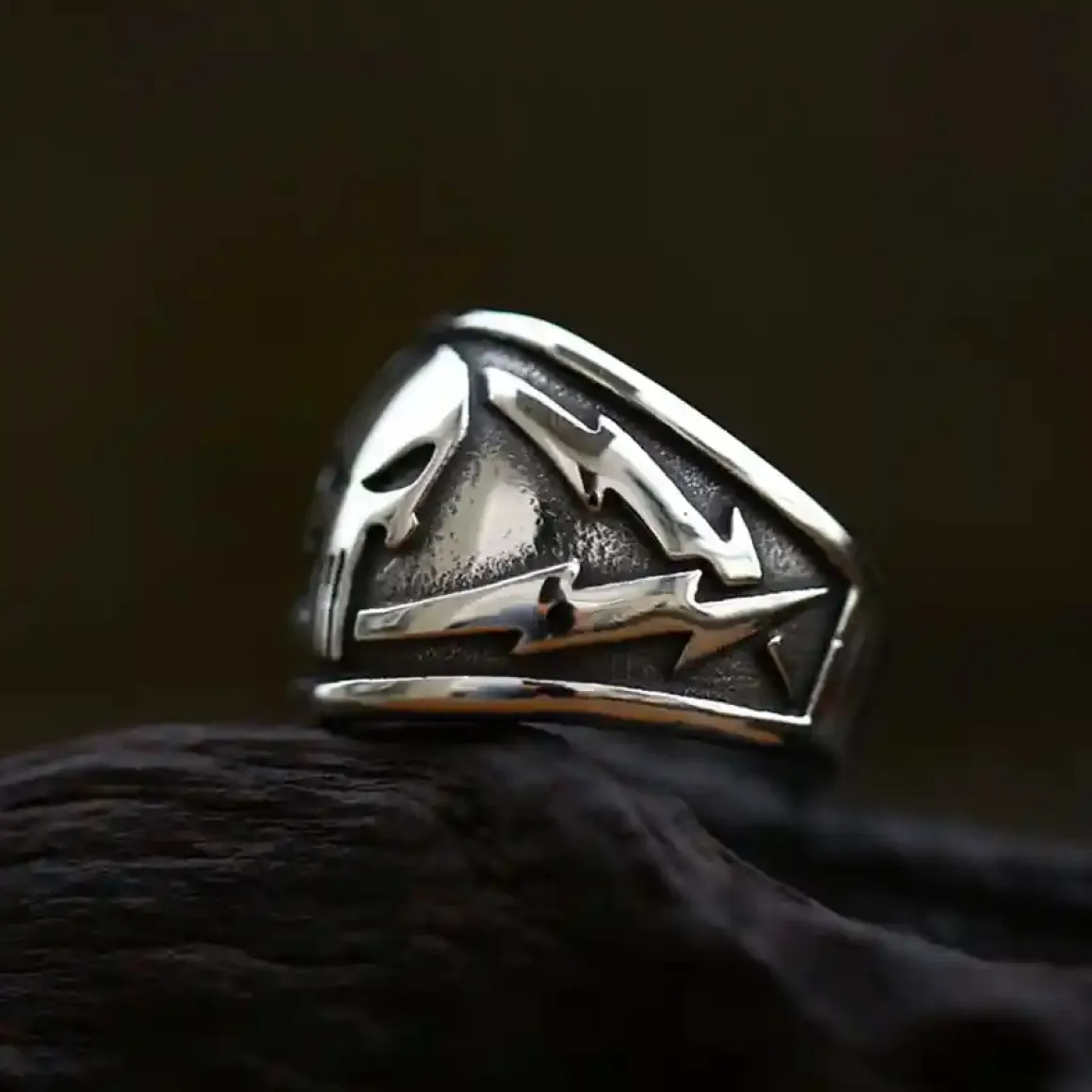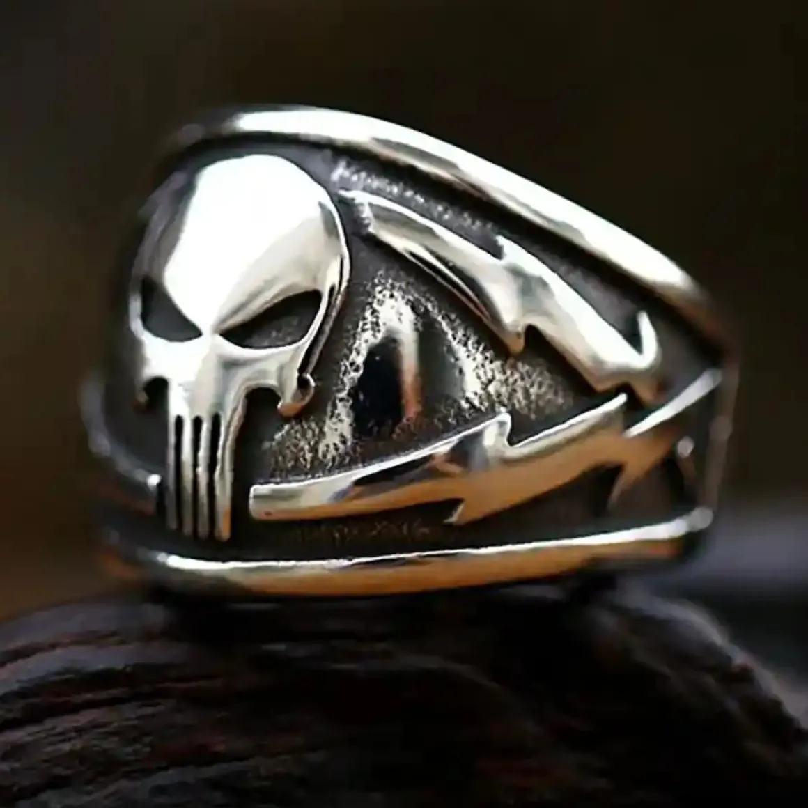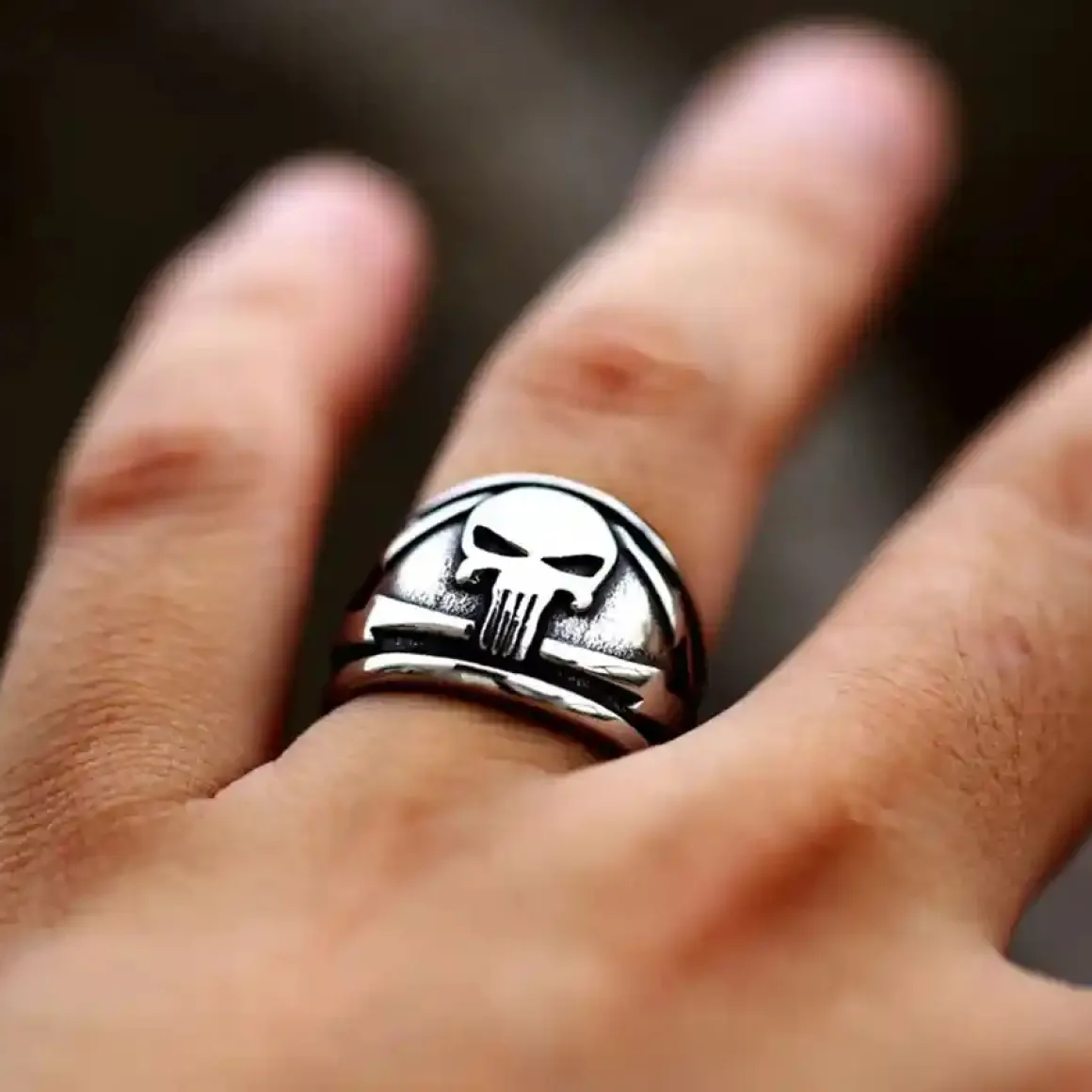 Vis din rå attitude med denne skullring i rustfrit stål, designet til mænd med kant og personlighed.