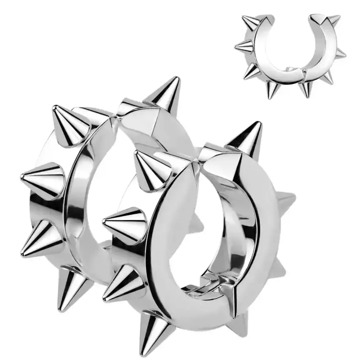 Opdag den stilfulde ‘Spikes øreclip i IP ædelstål Steel’, perfekt til mænd uden hl i øret..