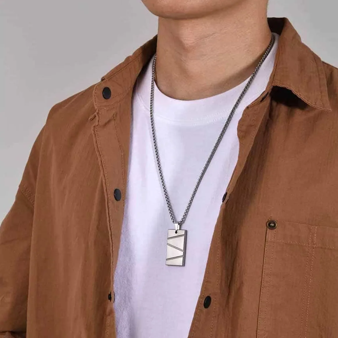 Dette flotte smykke er lavet af matteret rustfri stål, der tilføjer en moderne og elegant touch til enhver stil.
