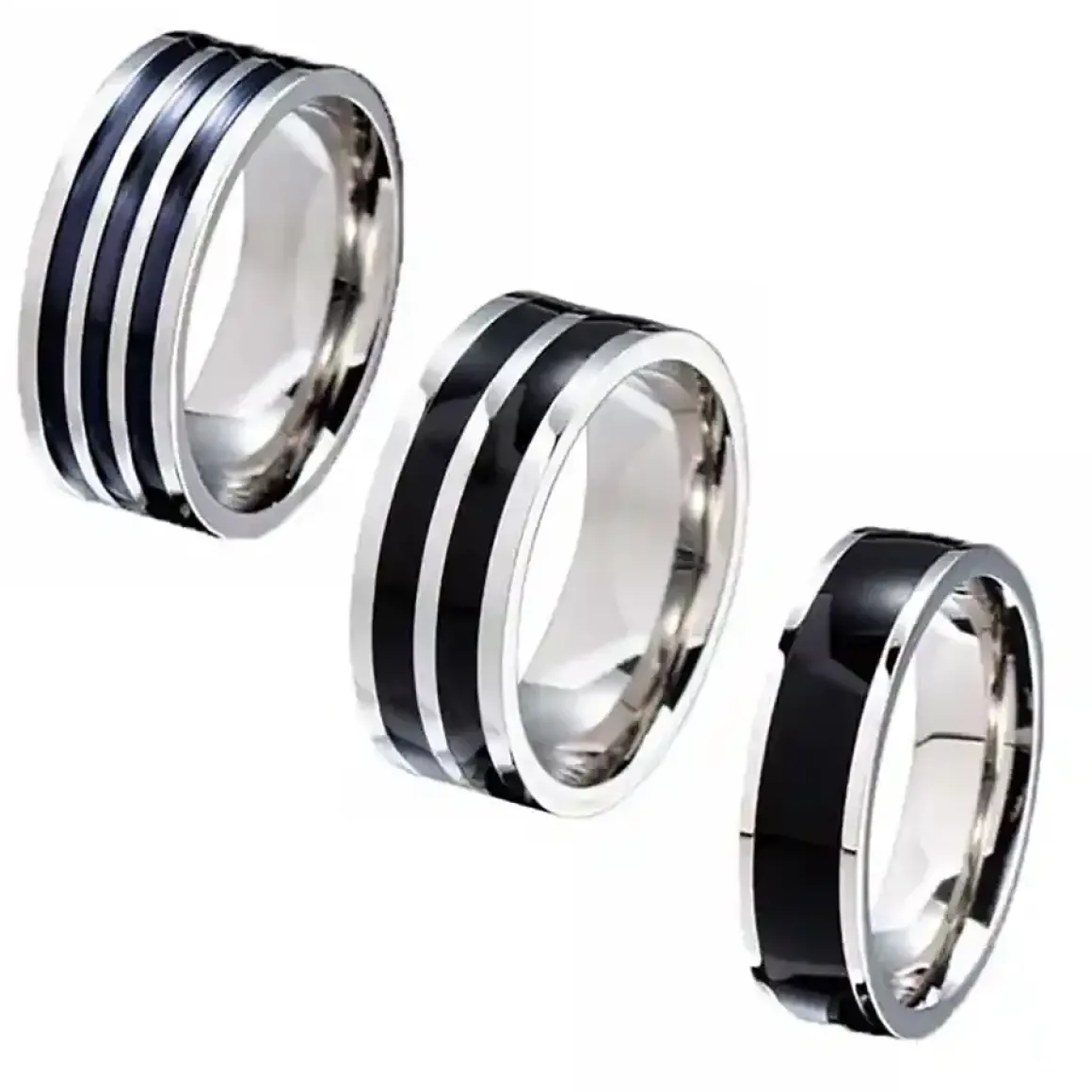 ringen med 1en stribe er 6mm bred og de andre er 8mm bred.