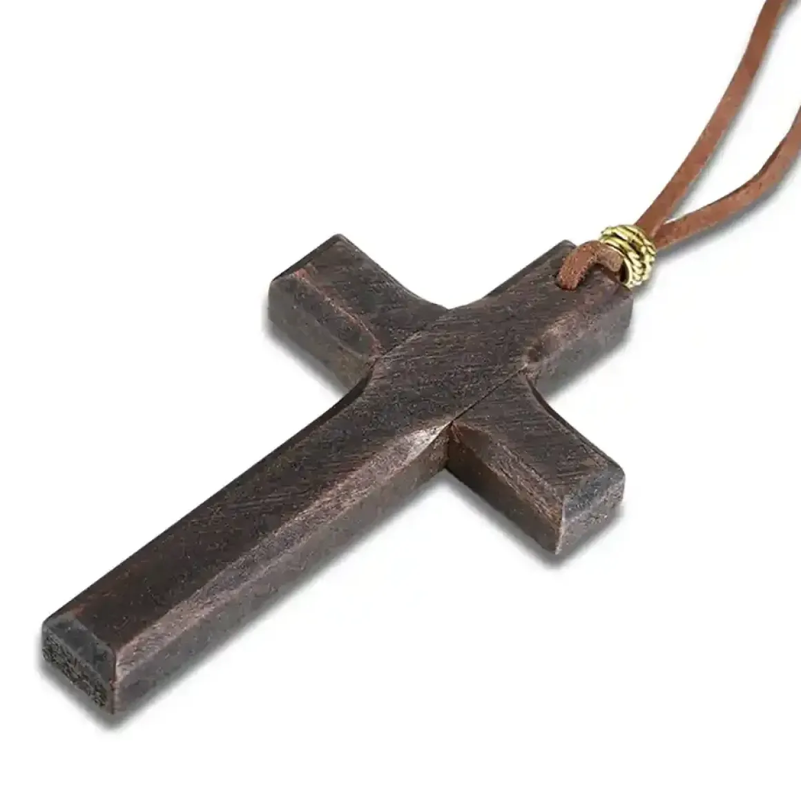 Brunt trækors med lædersnor.