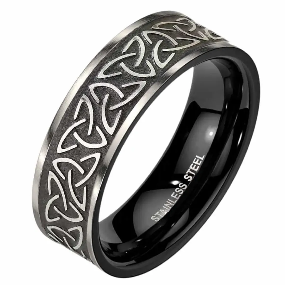 Herrering i PVD black coatet rustfri stål med indpræget trinity sign. (Vandfast)