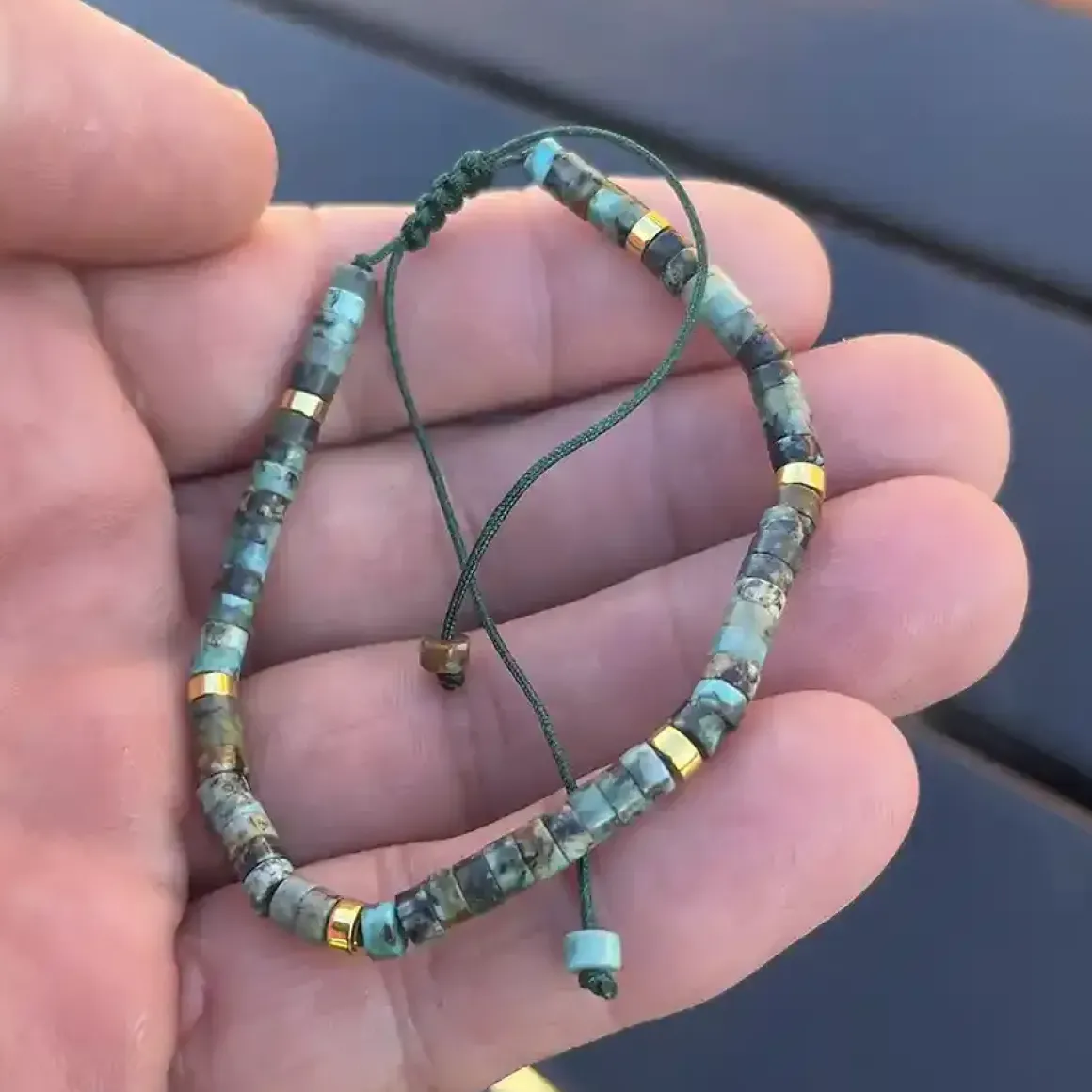 Et eksklusivt herrearmbånd med ægte turkise naturperler i 5 mm tykkelse.