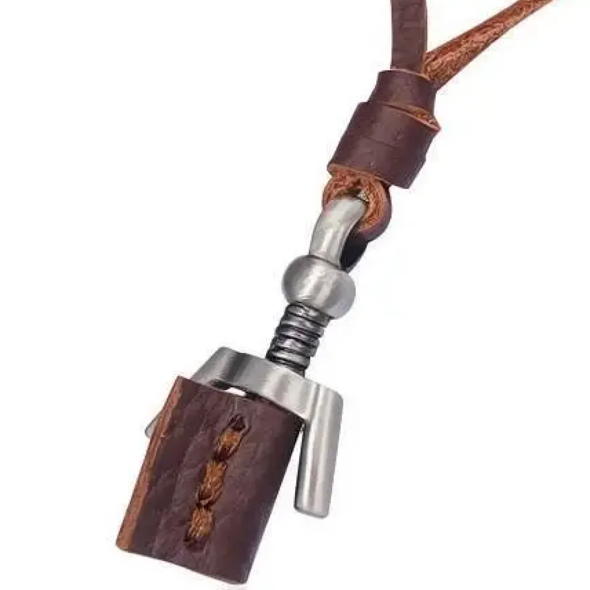 Denne kraftige lædersnor med metalvedhæng er maskulint.