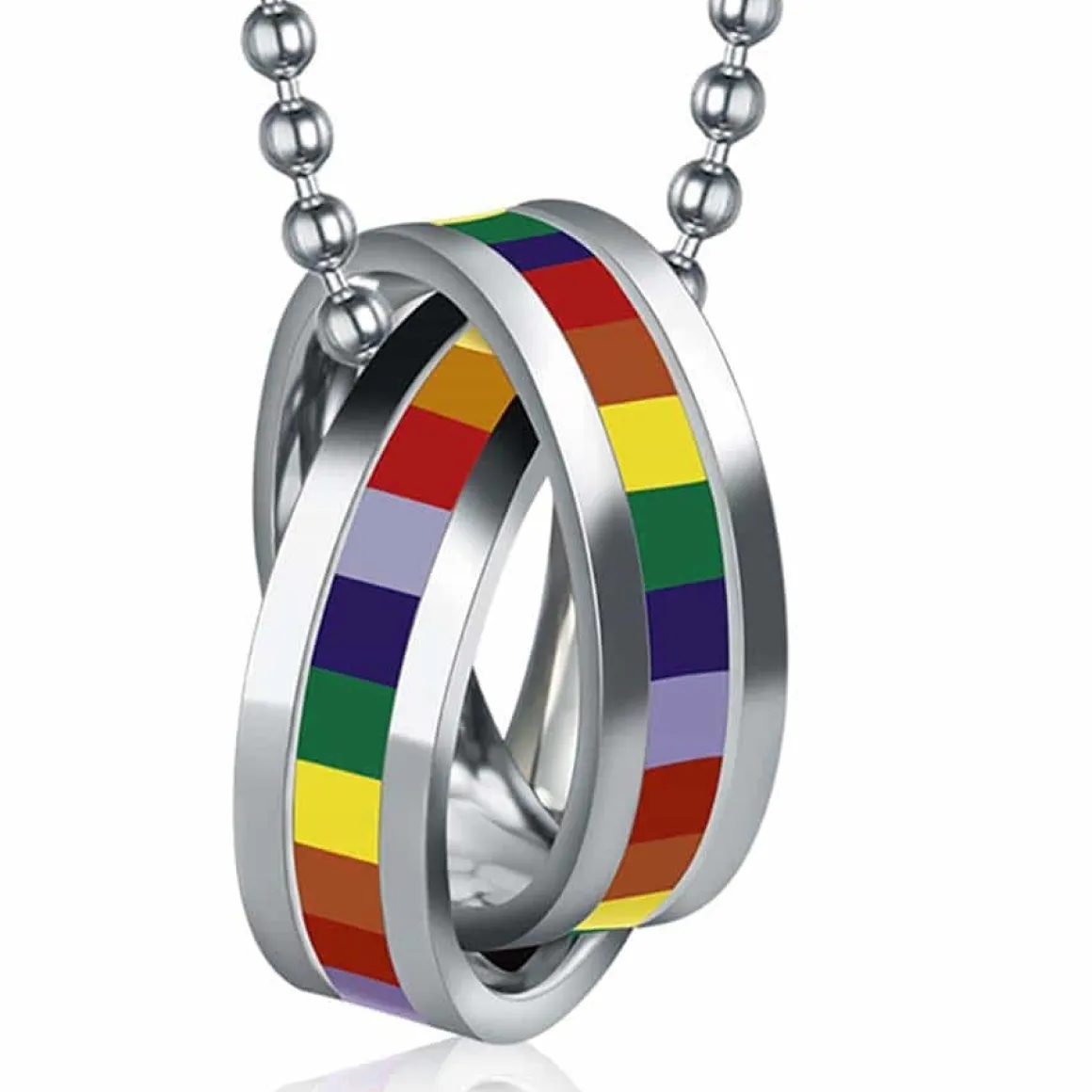 2 ringe i rustfrit stål i disse flotte regnbue farver der bare symbolisere G Pride Disse ringe er 2cm i diameter.