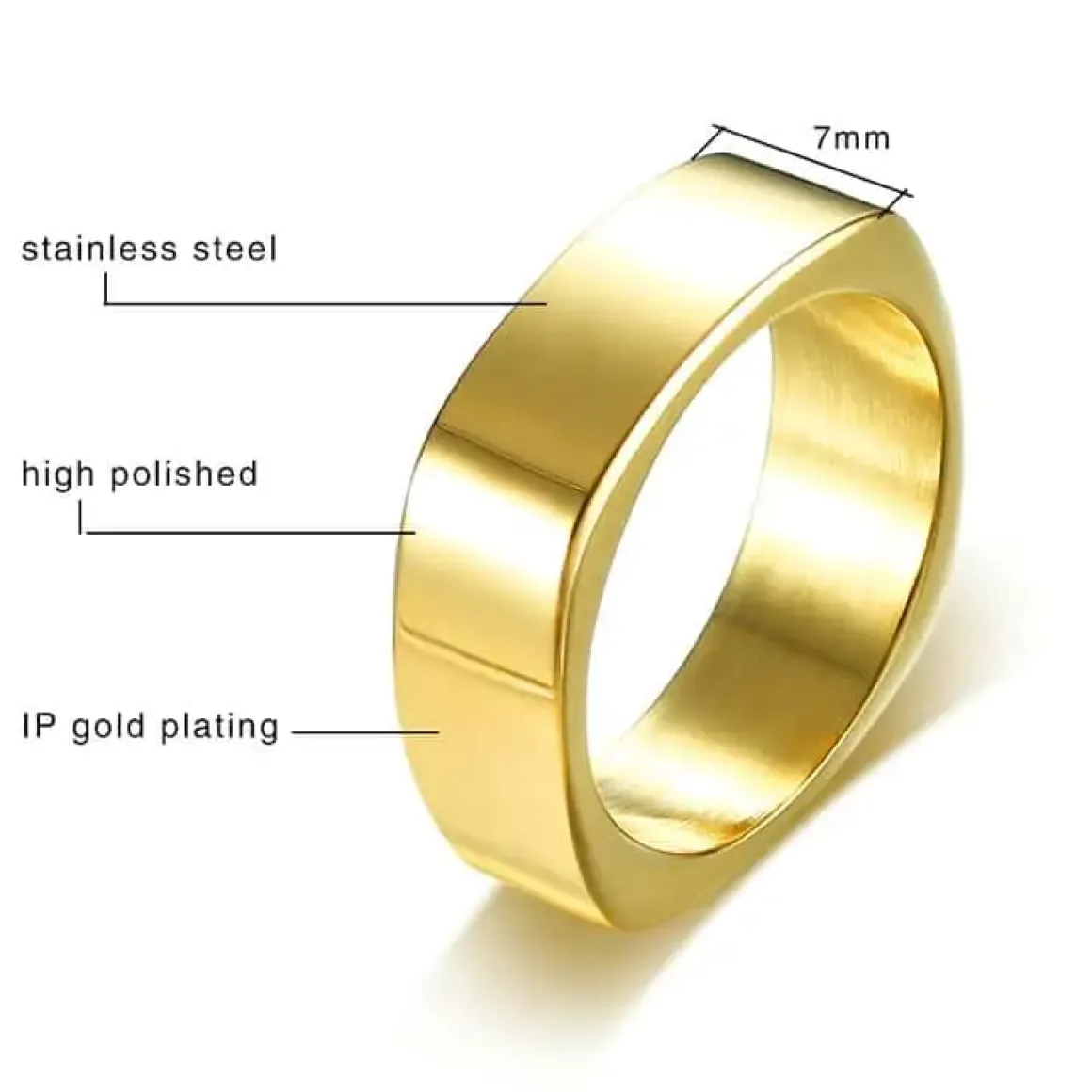 Med et elegant design og en bredde på 7mm er denne ring perfekt til enhver lejlighed. Rustfrit stål og forgyldt for at sikre holdbarhed og glans.