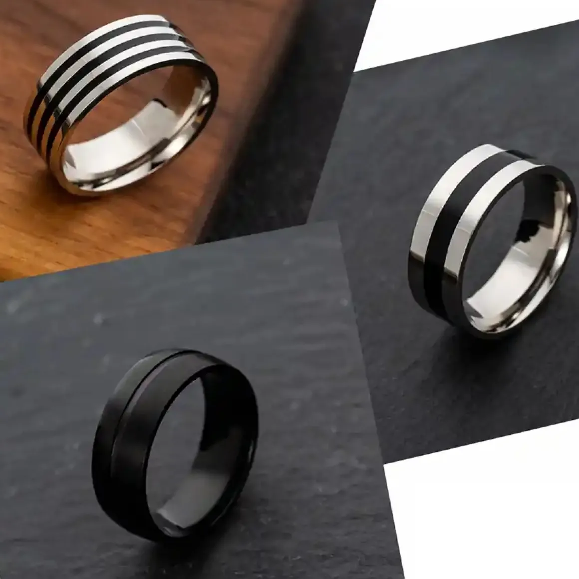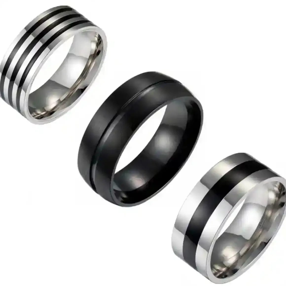 Fin elegance og stil med vores sæt af tre herreringe i rustfri stål, solgt samlet.